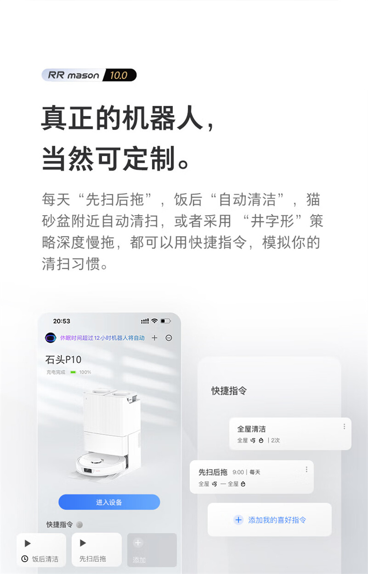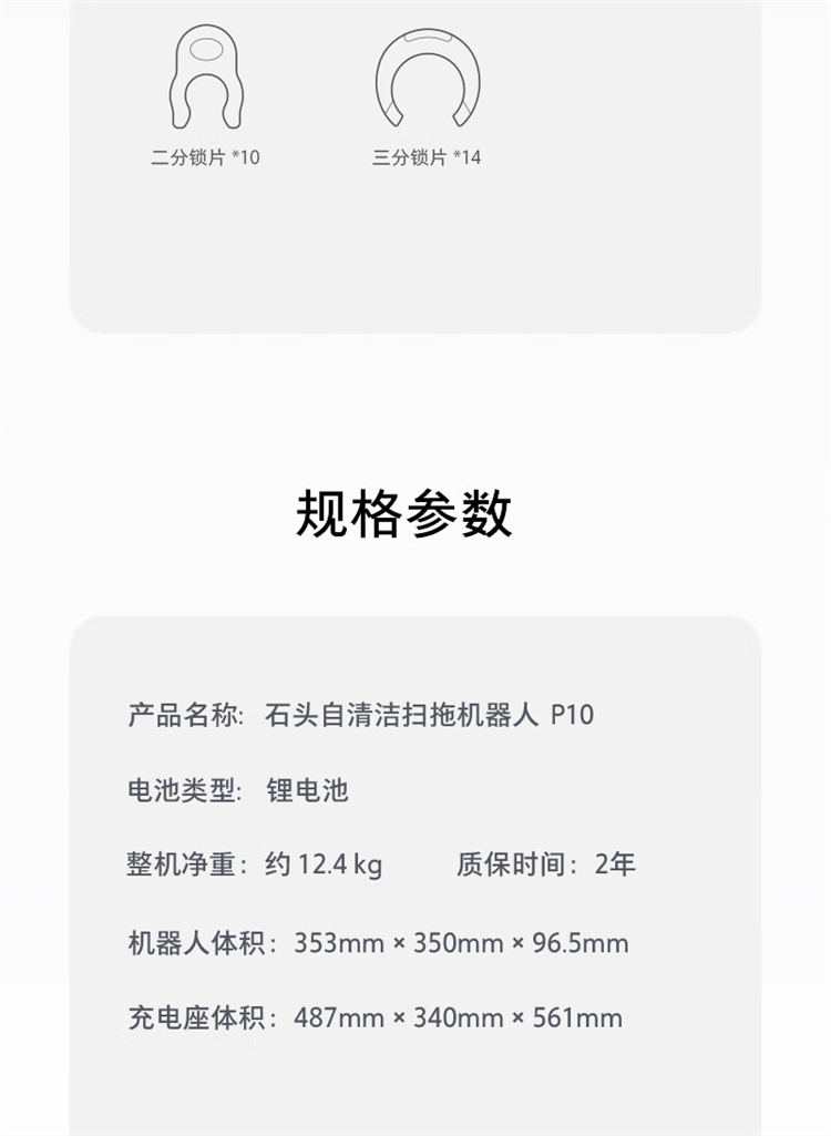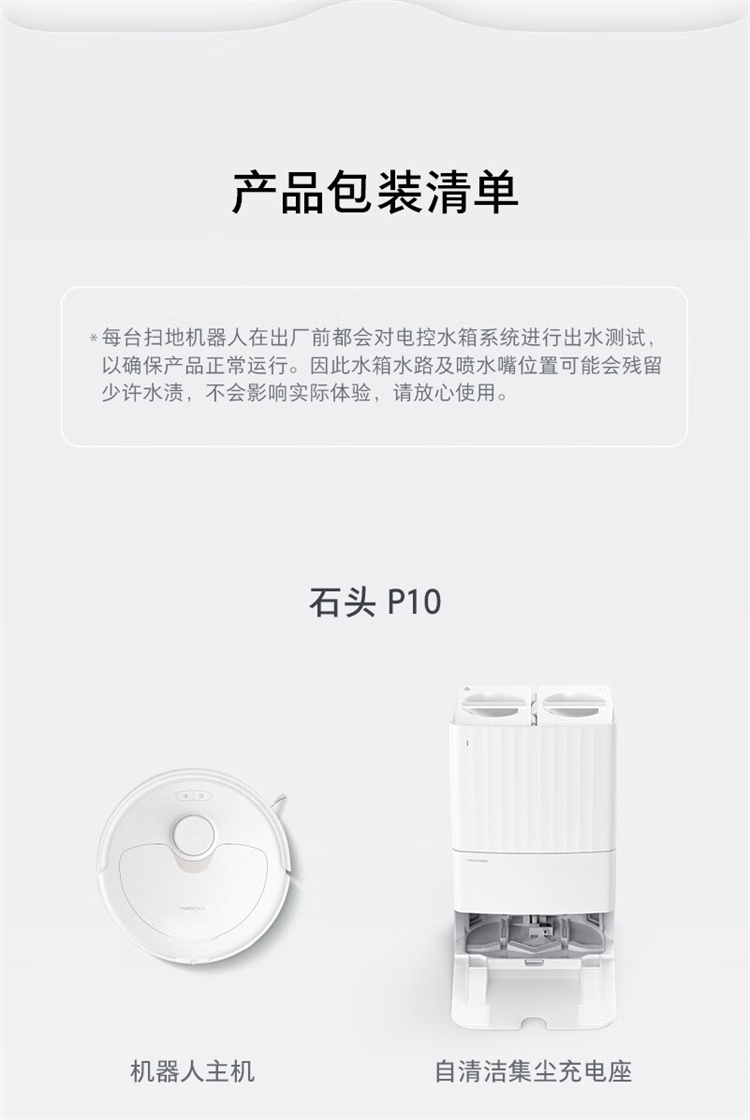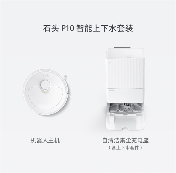 石头(roborock)P10自动上下水扫地机器人扫拖一体 擦地机 自动清洗集尘烘干补水 台 白色