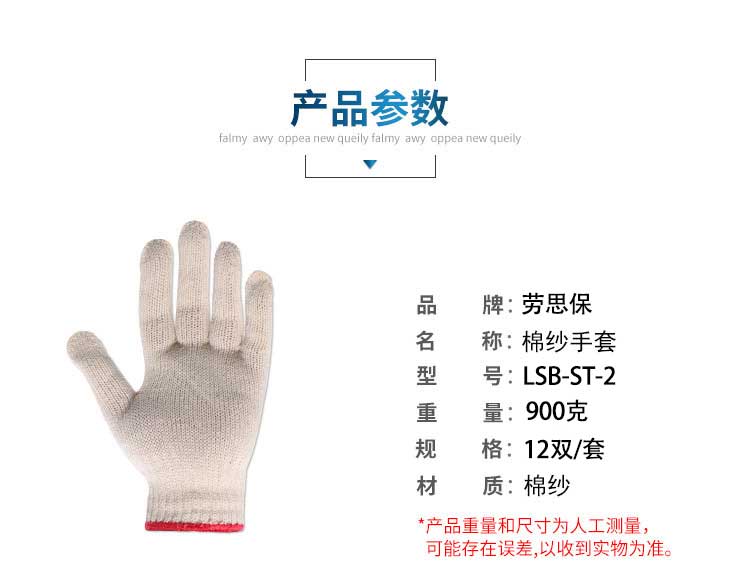 劳思保 LSB-ST-2 加厚耐磨劳保手套棉纱手套900g(12双) 白色