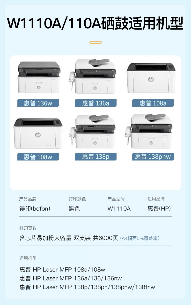 得印 W1110A 110A硒鼓大容量易加粉2支装 适用惠普HP 136w 136wm 单位:套 黑色