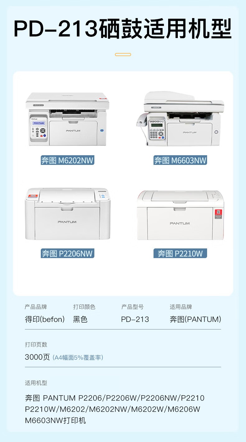 得印PD-213硒鼓适用奔图(PANTUM)m6202nw硒鼓 p2206w p2206nw单位:支 黑色