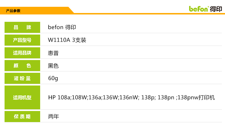 得印W1110A碳粉三支装 110A硒鼓墨粉适用惠普HP108a 108W 136a 单位:套 黑色