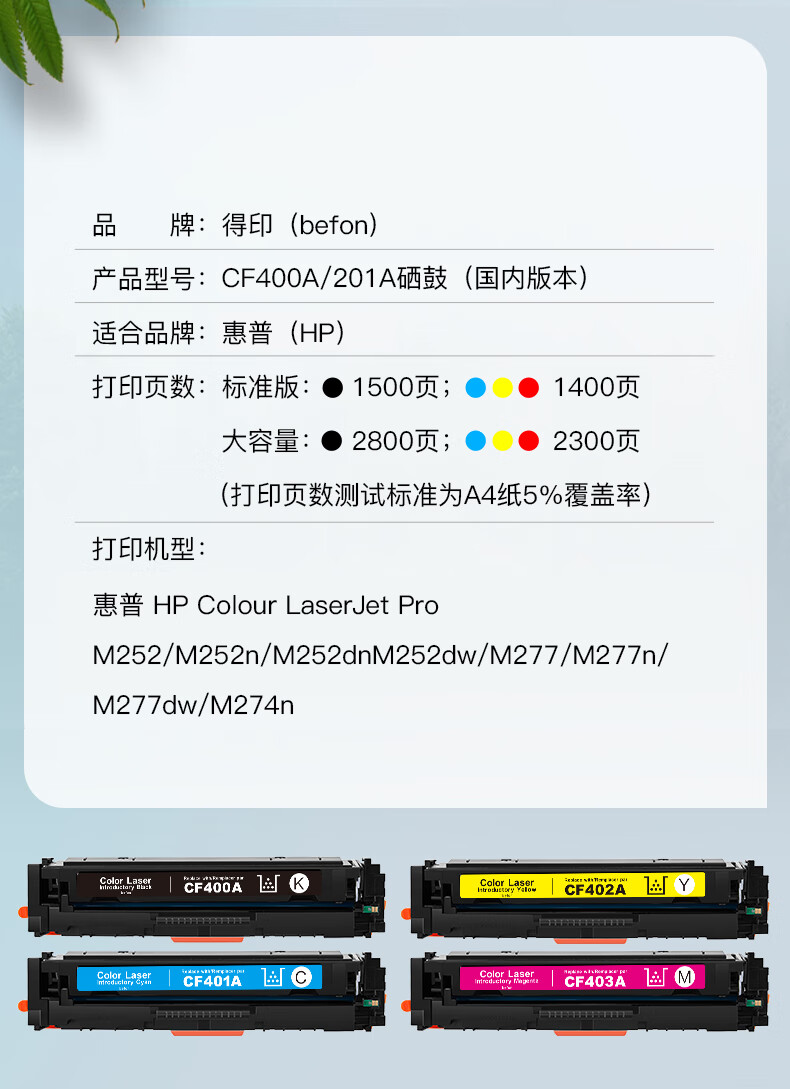 得印CF400A硒鼓黑色大容量适用惠普m277dw M252 M252N M252DN单位:支 CF400X黑色硒鼓