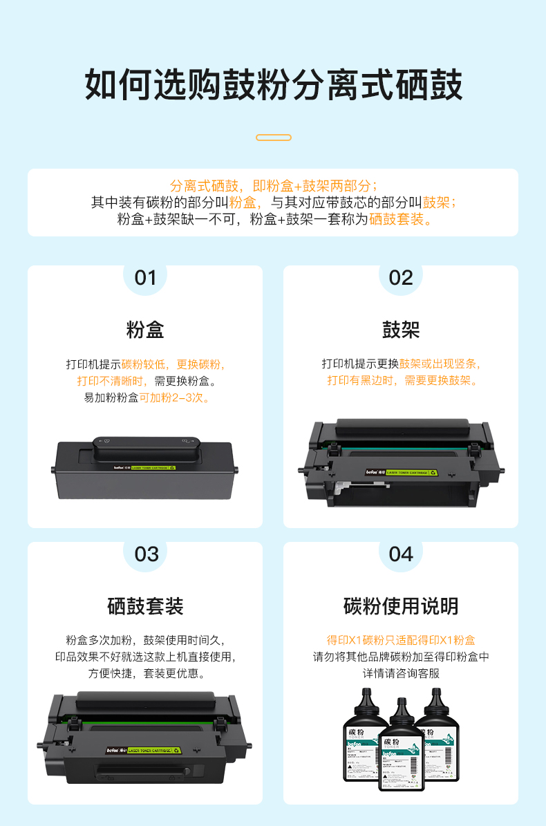 得印适用华为X1打印机粉盒墨盒5支装 华为X1粉盒硒鼓 F-1500墨粉盒 X1粉盒*5支