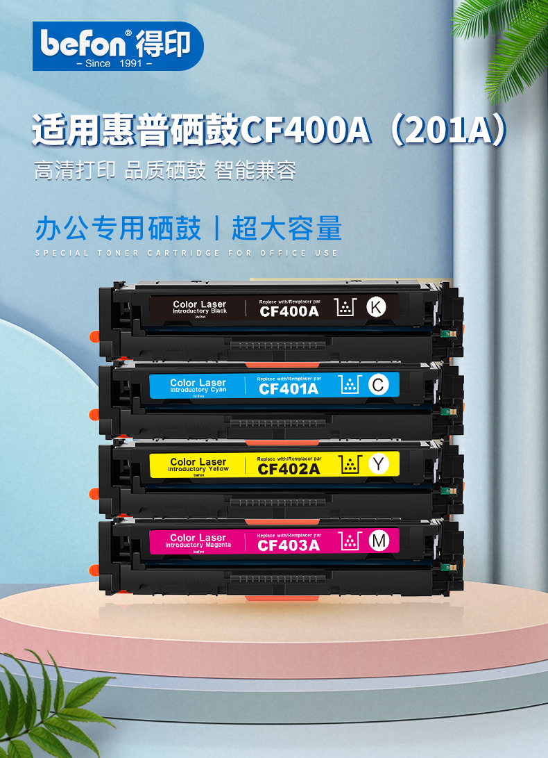 得印CF400A硒鼓CRG045 mf633cdw四色套装 适用惠普m277dw M252 M252N M252DN M252DW 201A彩色墨盒粉盒带芯片
