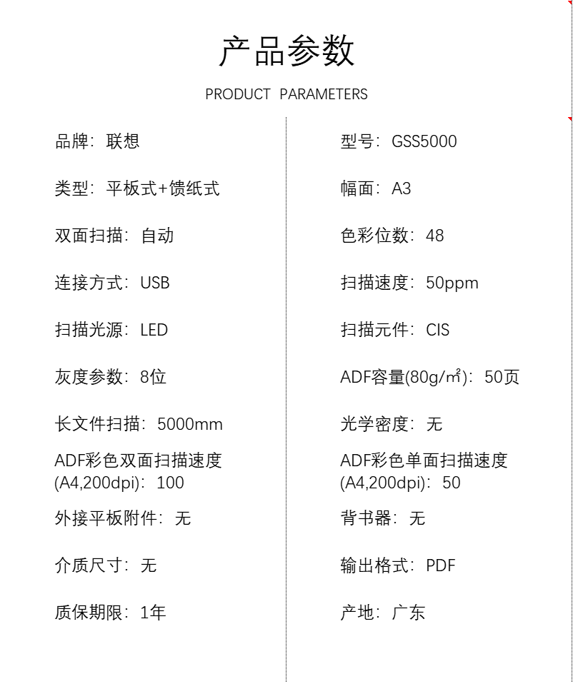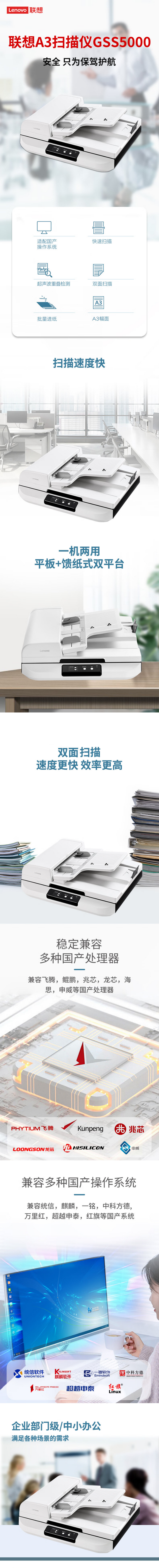联想(Lenovo) 扫描仪GSS5000【国产化】A3幅面扫描仪支持国产系统及Windows系统 平板+ADF高清双面自动扫描 台 白色