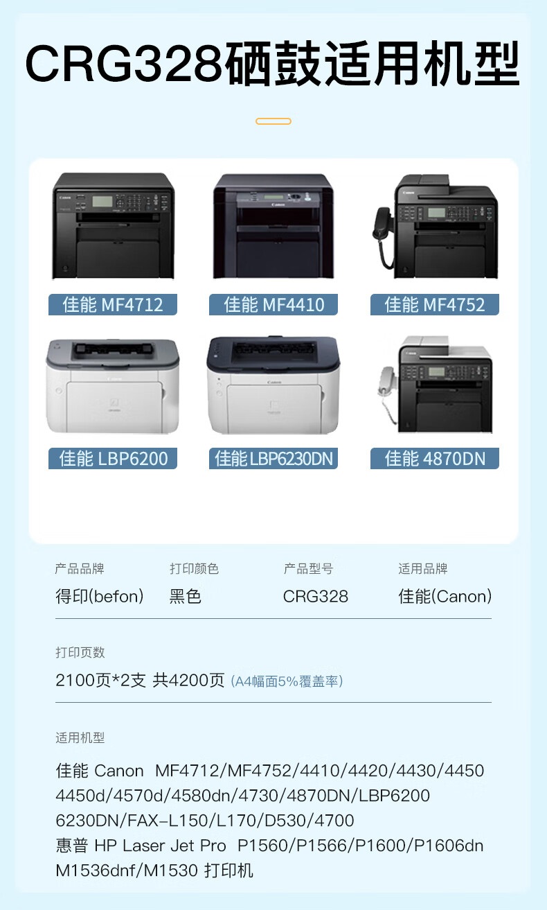 得印CRG328硒鼓2支装 适用佳能CRG326 MF4712 MF4452 MF4400单位:套 CRG328黑色硒鼓*2支