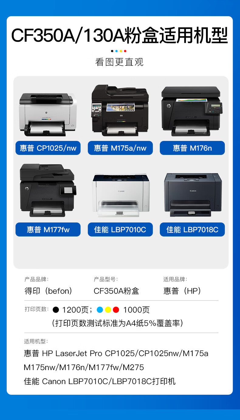 得印CF350A粉盒四色套装 适用惠普HP CP1025硒鼓 M176n墨盒M177fw 单位:套 彩色