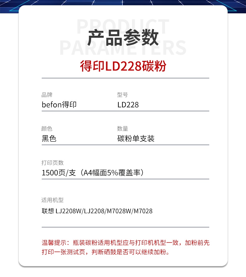 得印LD228碳粉 单支装适用联想小新M7208W 7208W m7268w M7218W单位:支 LD228碳粉
