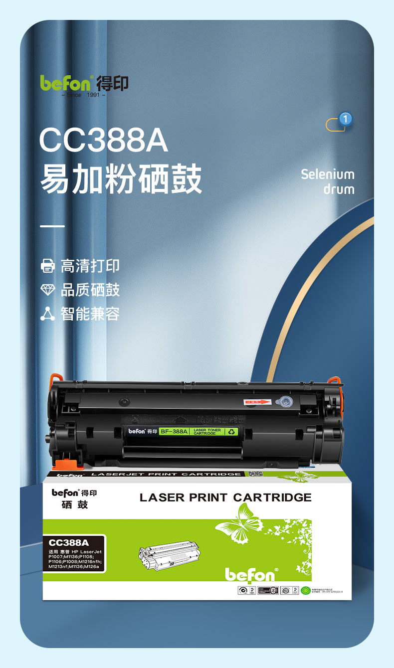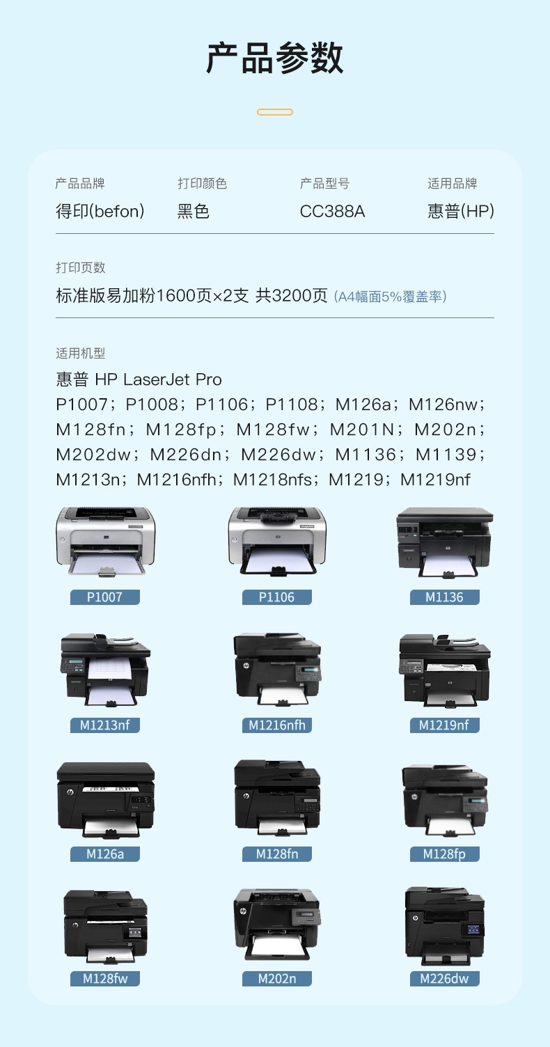 得印388a硒鼓易加粉2支装 适用惠普m1136墨盒p1108 p1106 m126a单位:套 CC388A硒鼓*2
