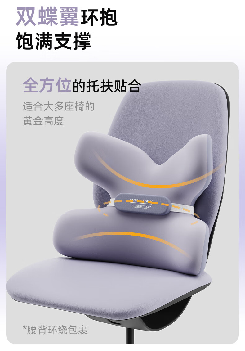 脑洞氛子(EVERYTHINK)人体工学蝶形护腰均码珍珠黑小蝴蝶腰靠HS2(单位:个) 珍珠黑
