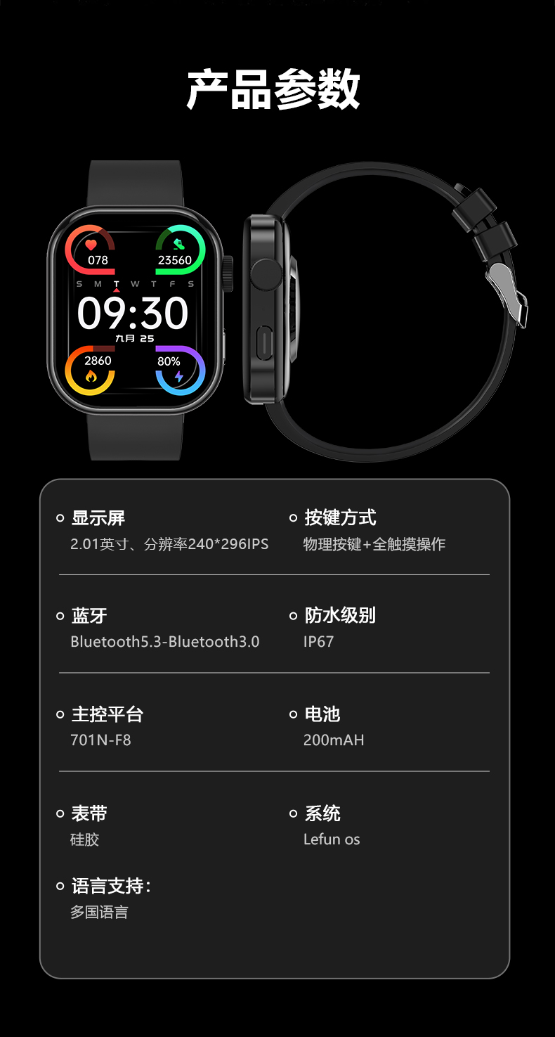 WITMIND N18 2.01寸 智能运动健康手表 黑色(单位:个)
