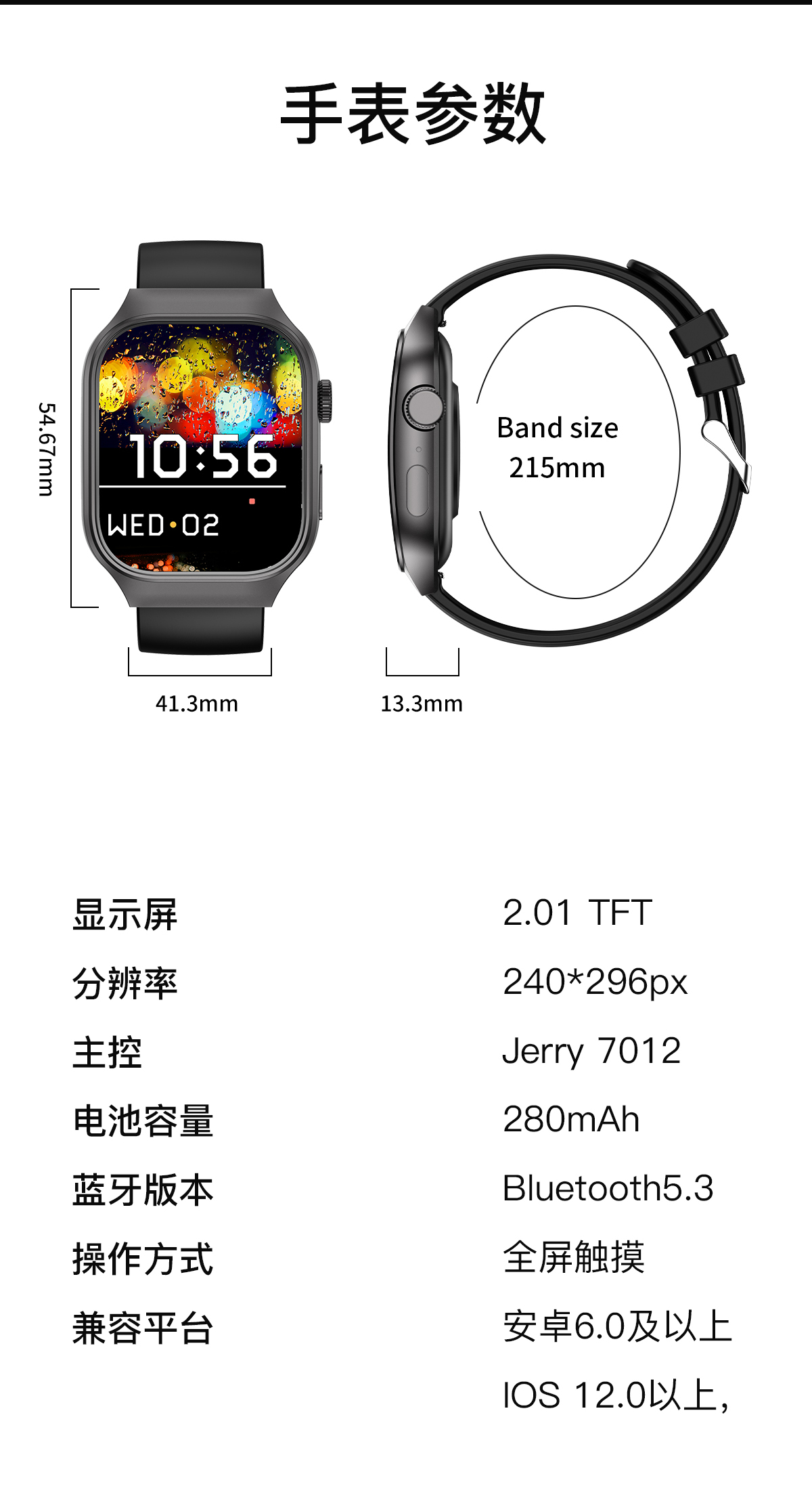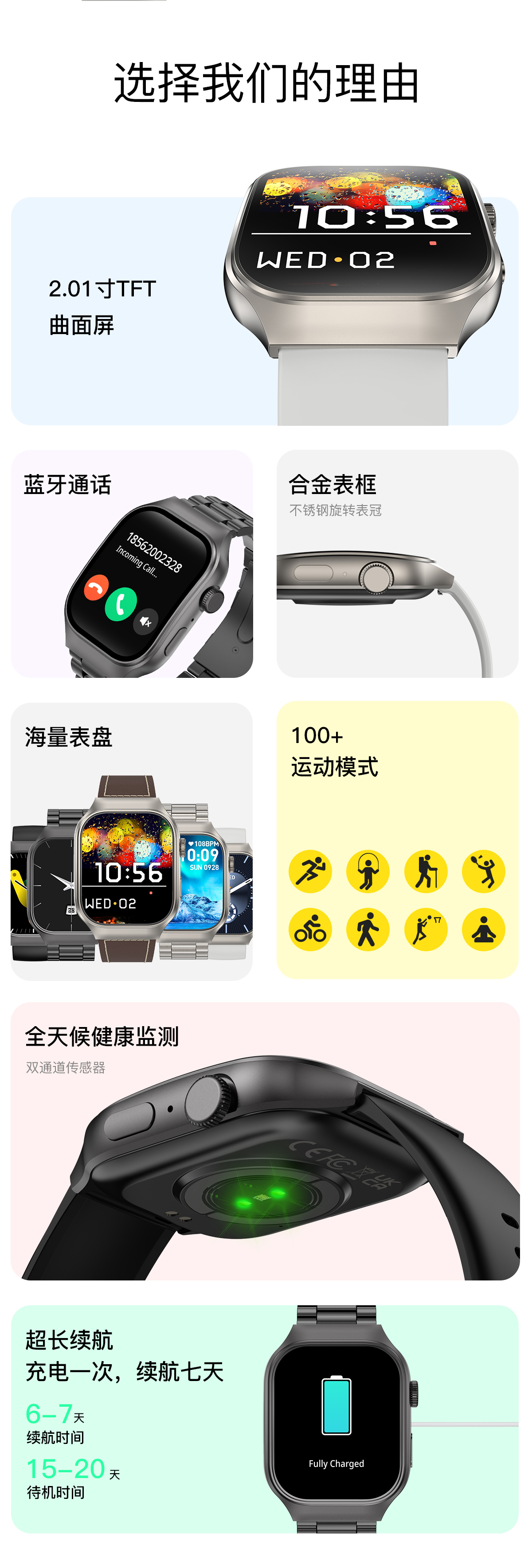 WITMIND T15PLUS 2.01寸 智能运动健康手表 黑色(单位:个)