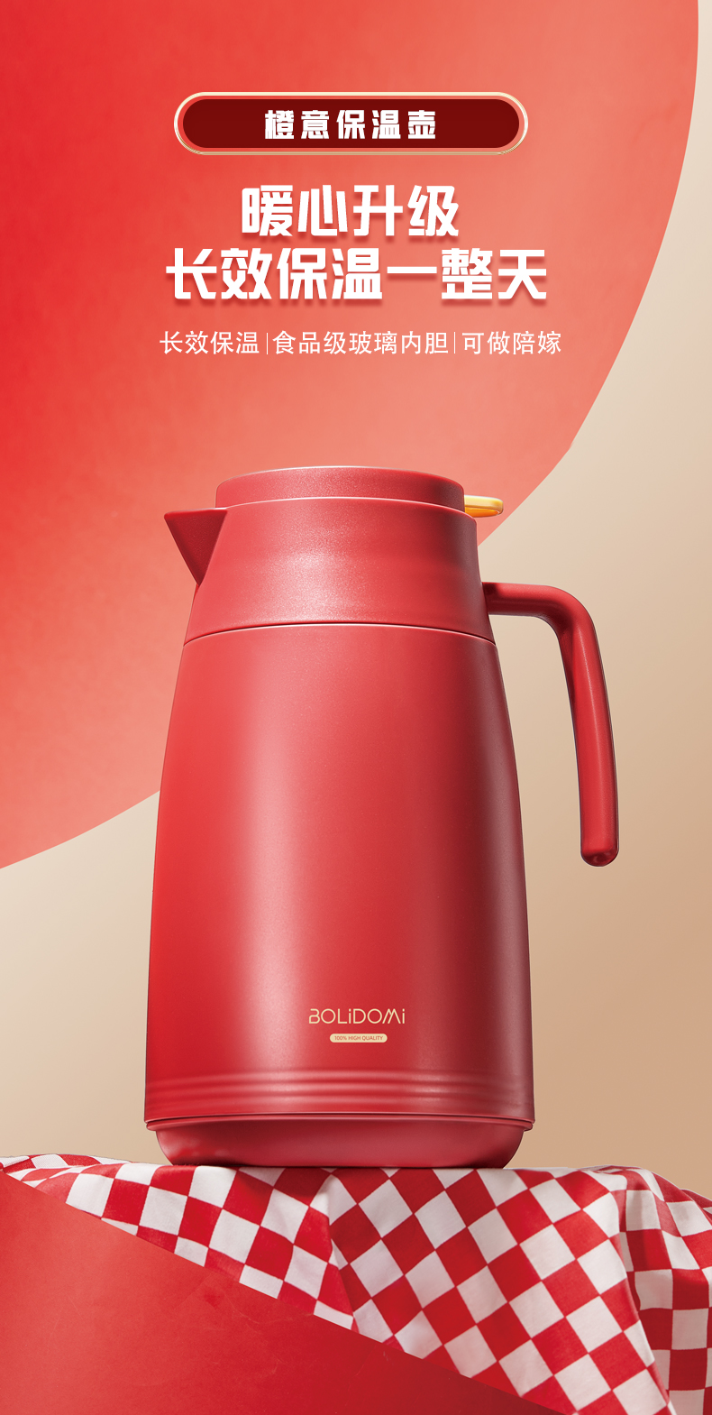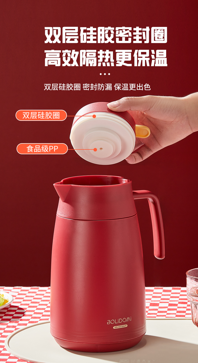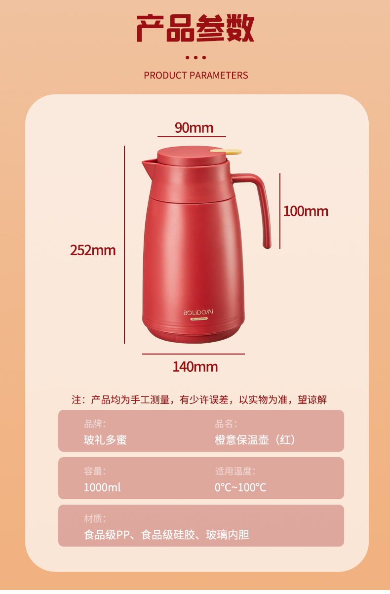 玻礼多蜜(BOLIDOMI) W-CY/L1H 容量1L 橙意保温壶红 红色(单位:只)
