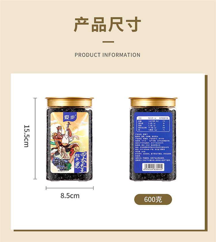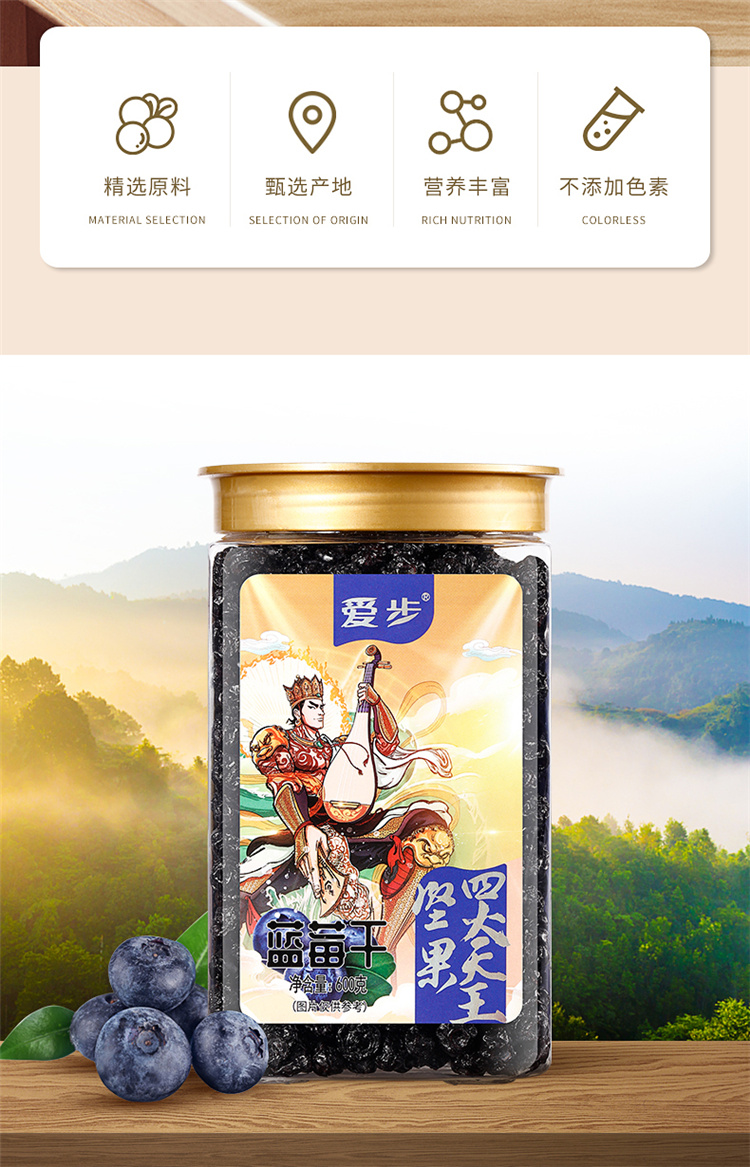 爱步大罐装休闲零食蓝莓干600克 红色