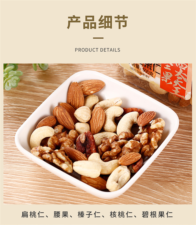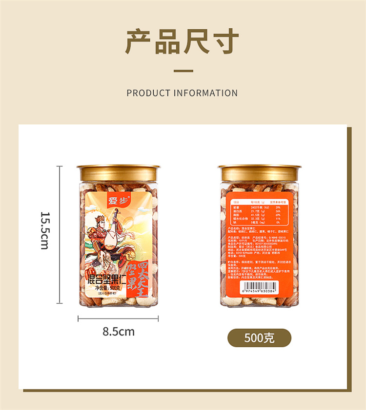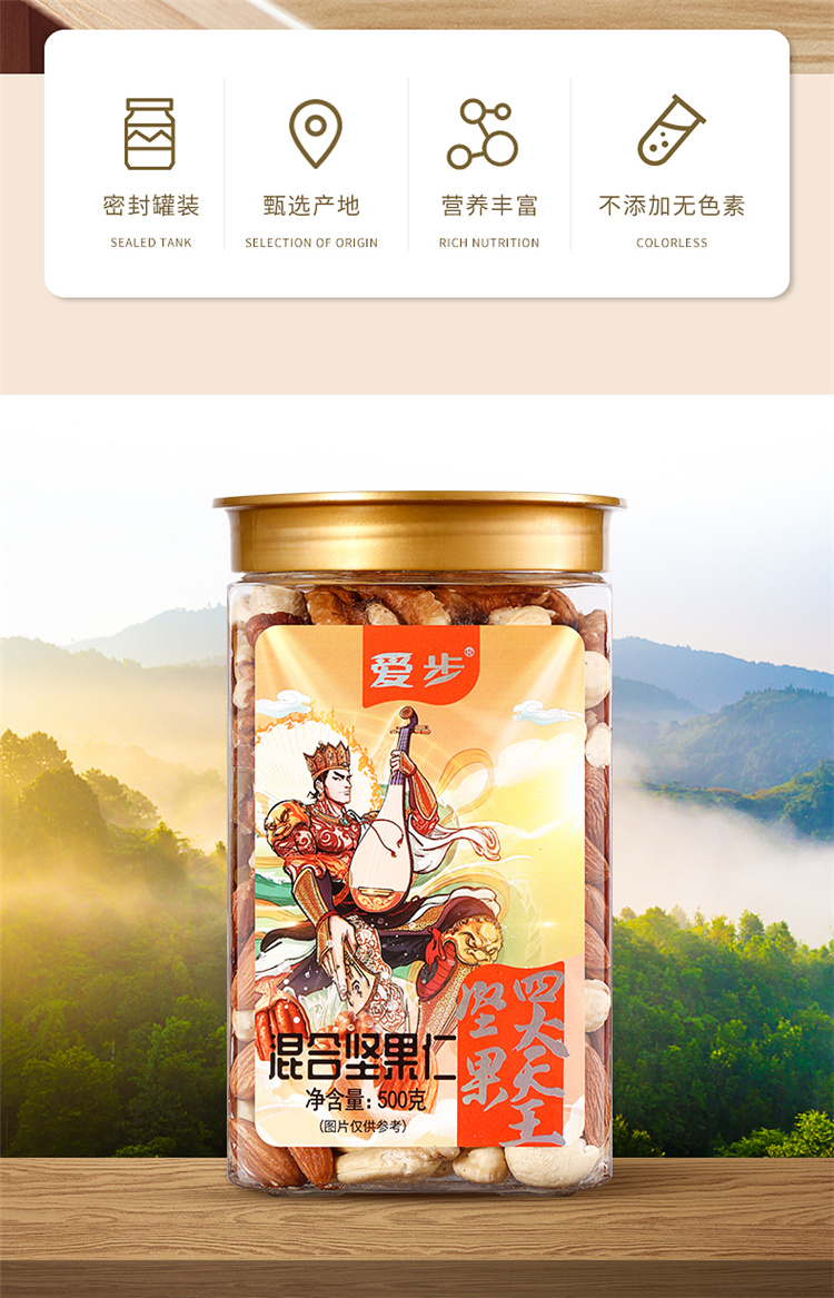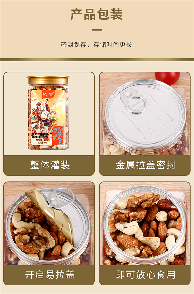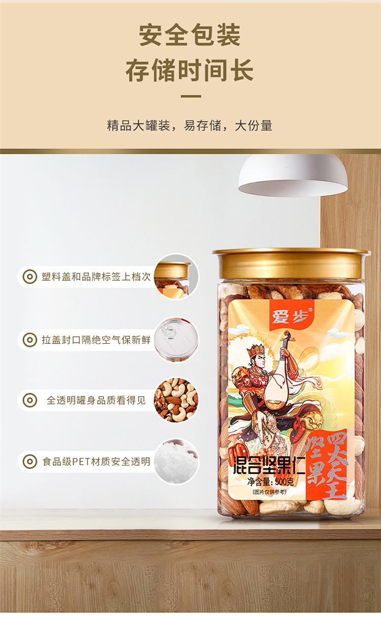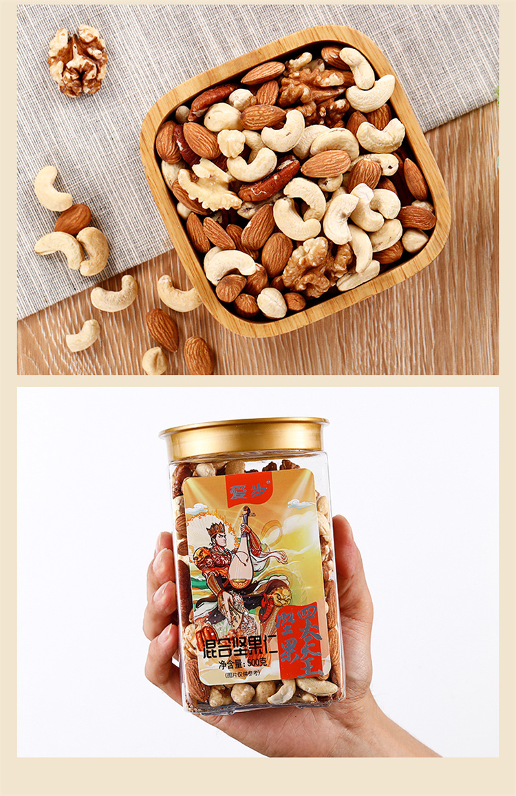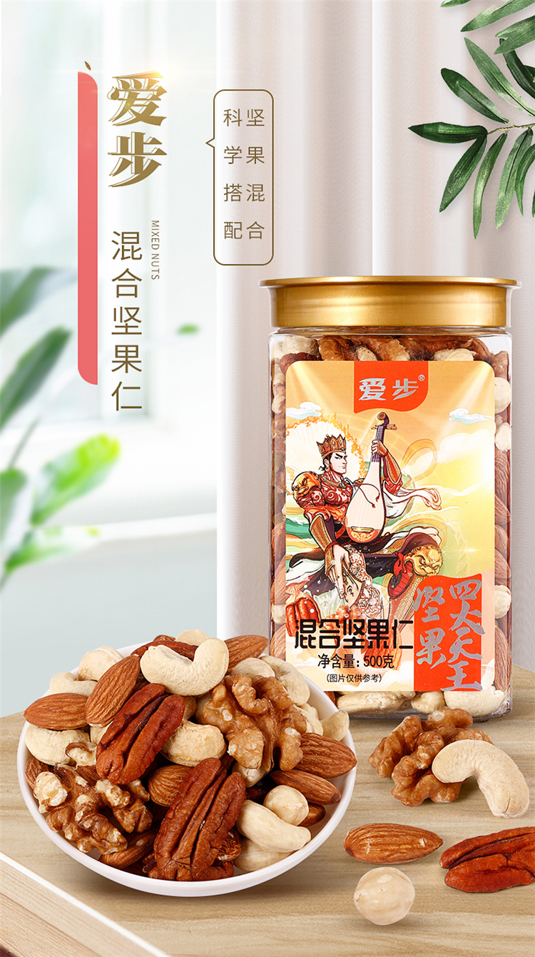 爱步大罐装休闲零食混合坚果仁500克 红色