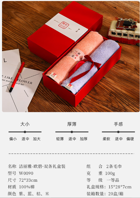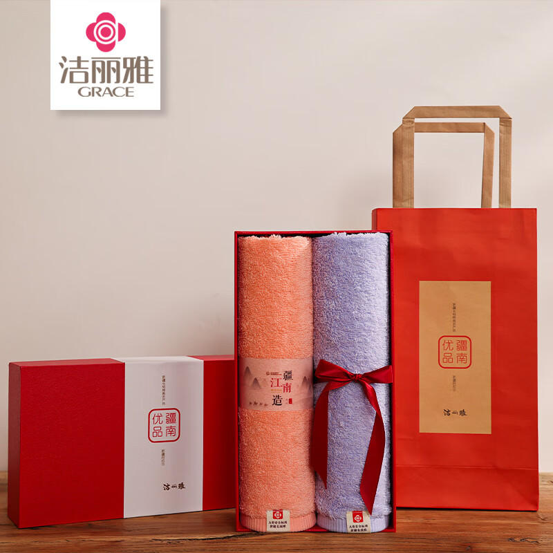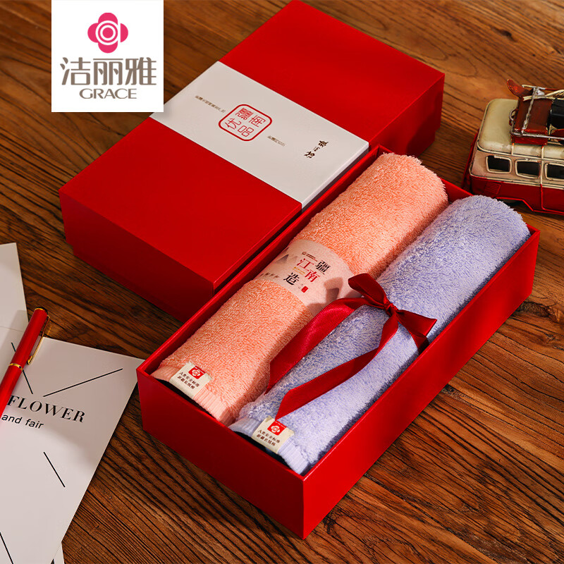 洁丽雅(Grace) W0090 72*33cm*100g*2 欧碧面巾2条装 混色(单位:盒)