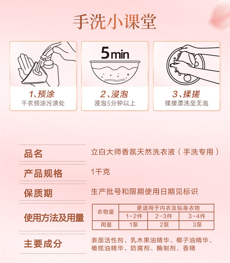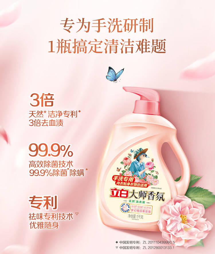 立白 手洗专用 1kg*2瓶 洗衣液 粉色(单位:组)