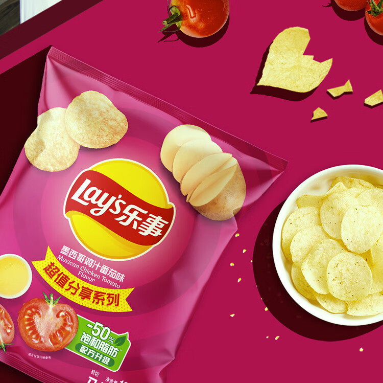 乐事(Lay's) 墨西哥鸡汁番茄味薯片 135g*2 真薯原切 够薄够脆 玫瑰红色(单位:组)