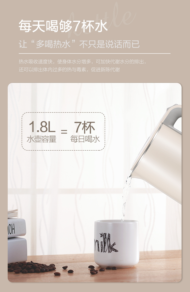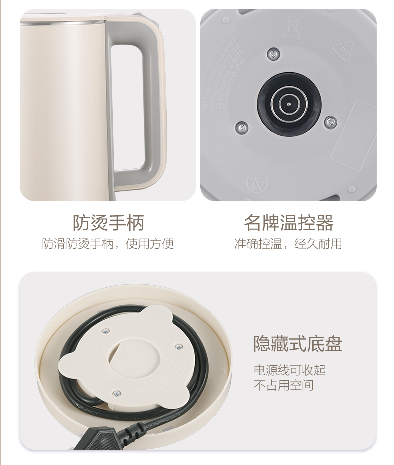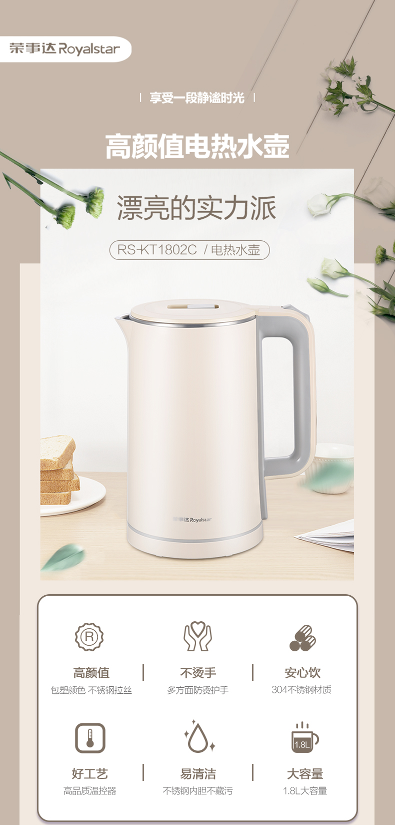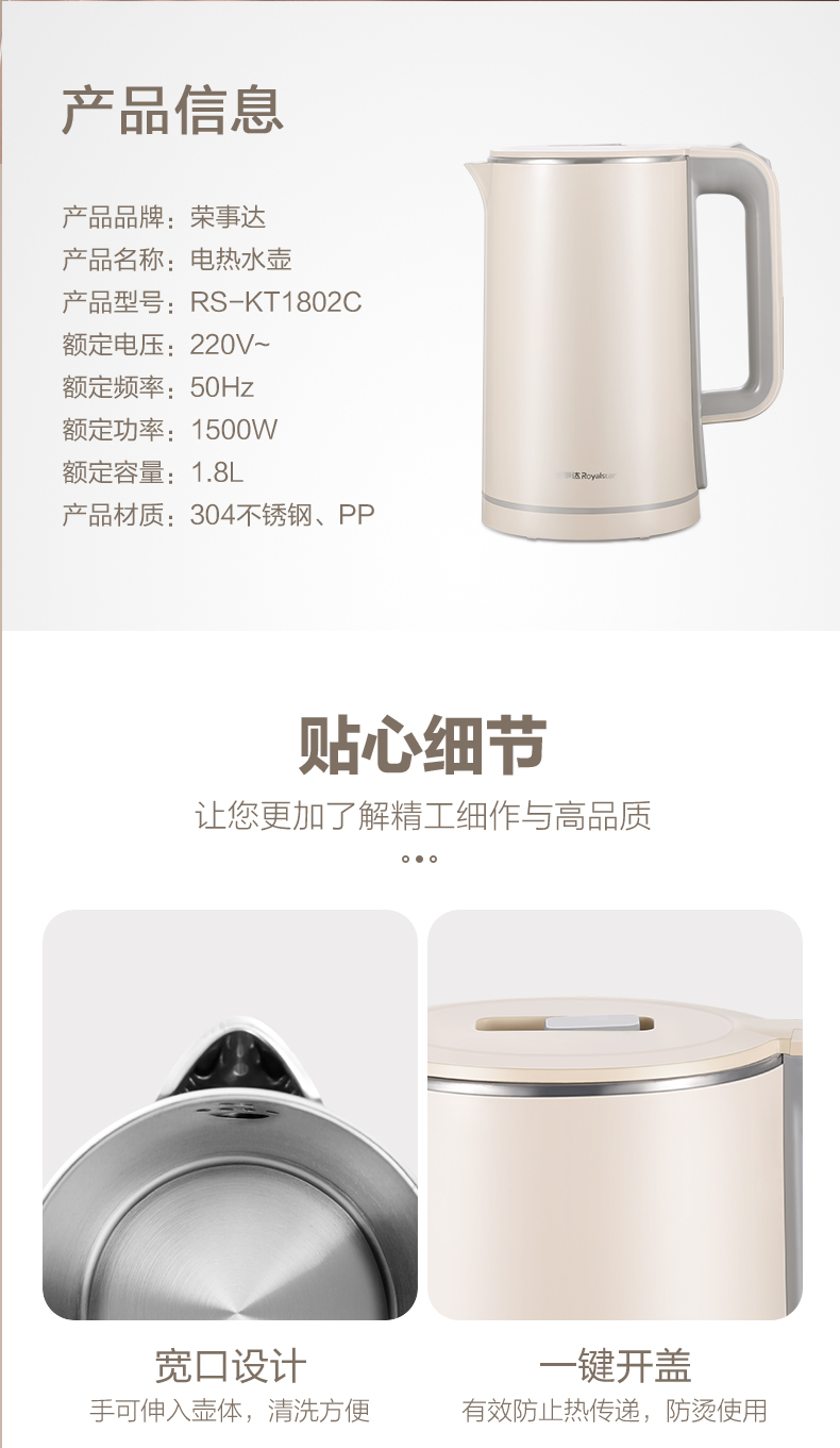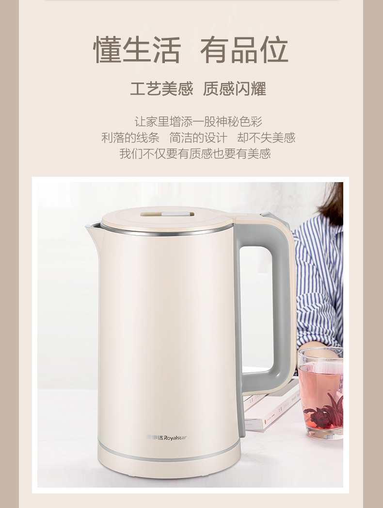 荣事达(Royalstar) RS-KT1802C 1.8L 电热水壶 象牙色(单位:台)