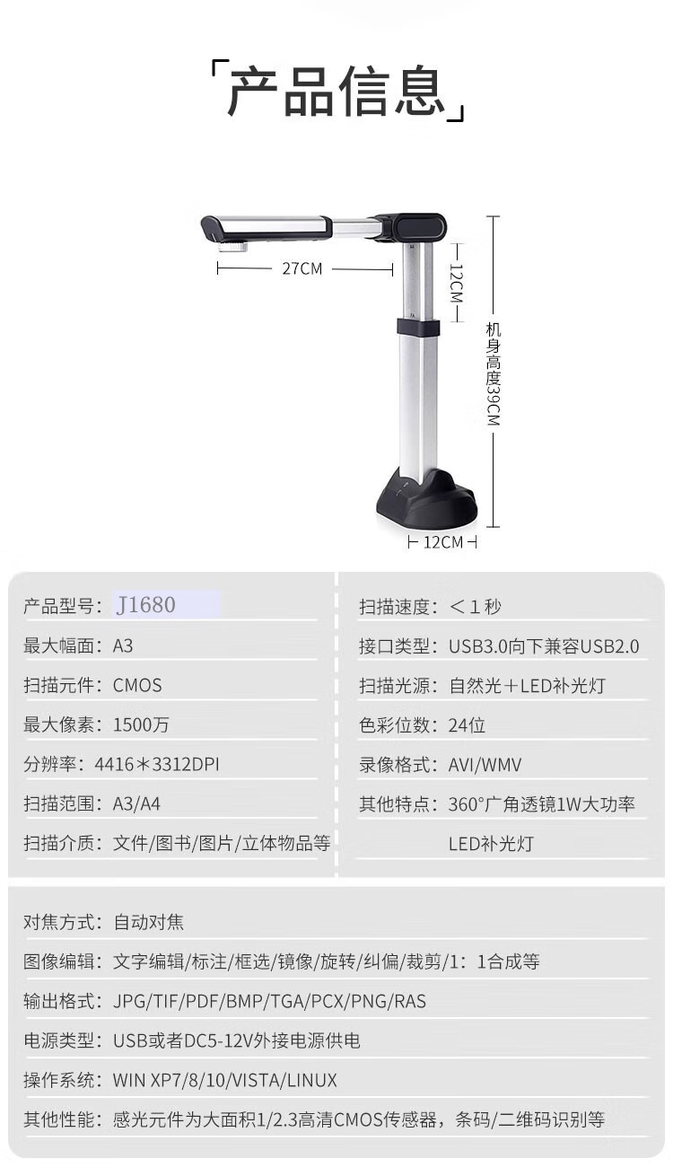 良田 J1680 2kg 高清像素高拍仪 曜石黑(单位:台)
