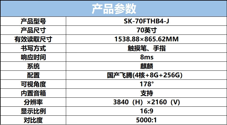 科触 SK-70FTHB4-J 国产飞腾 4核/8G/256G 70英寸 国产平板 黑色(单位:台)