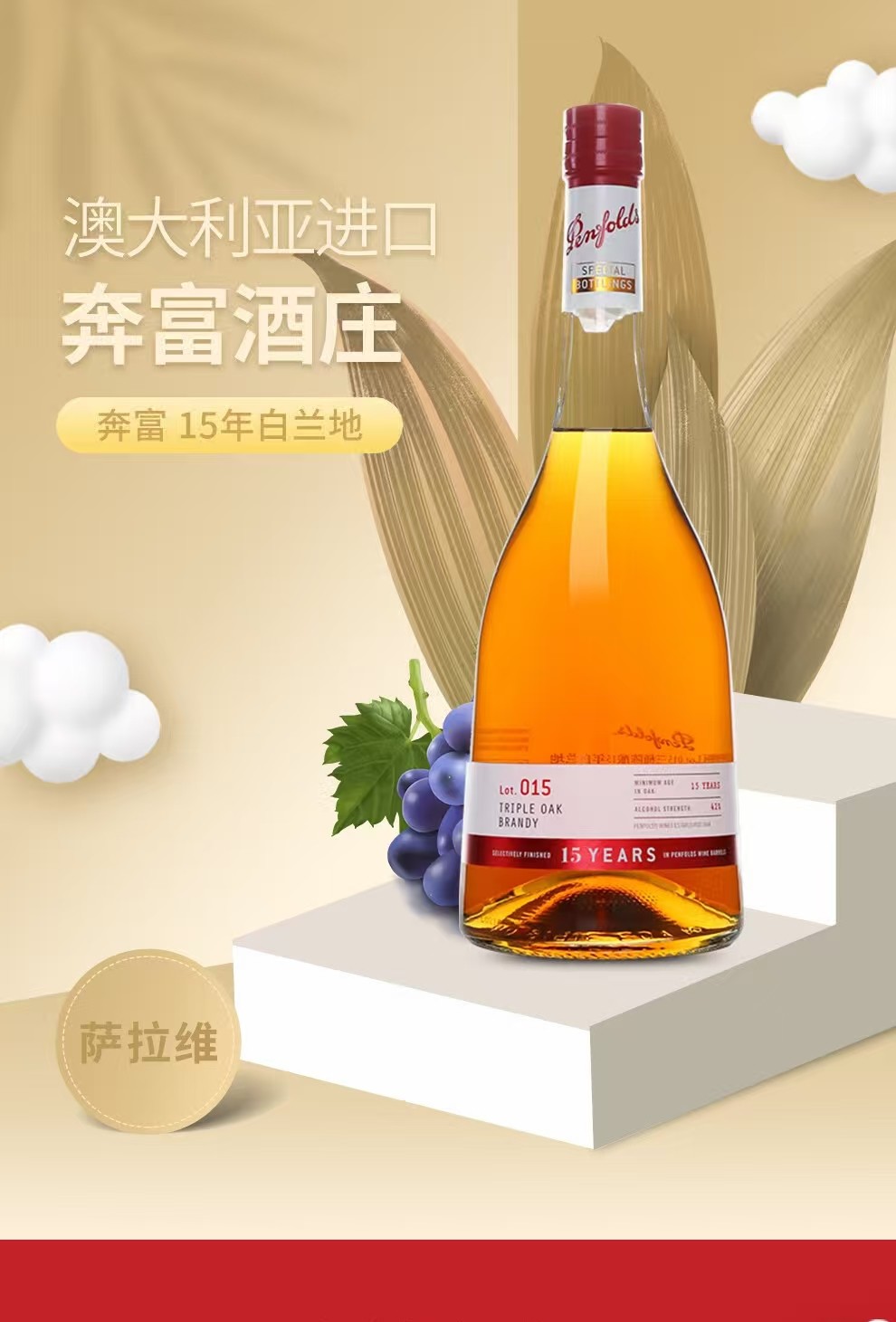 奔富 特瓶Lot.015三桶陈酿15年白兰地葡萄酒 750ml 正品行货 黑色(单位:瓶)
