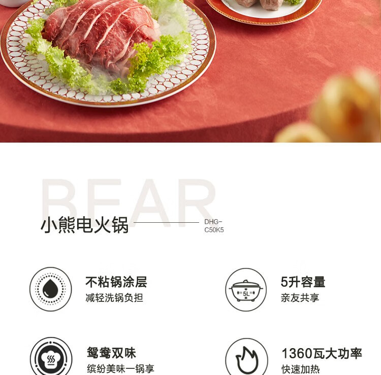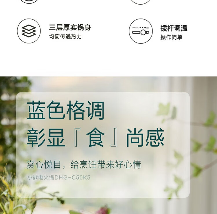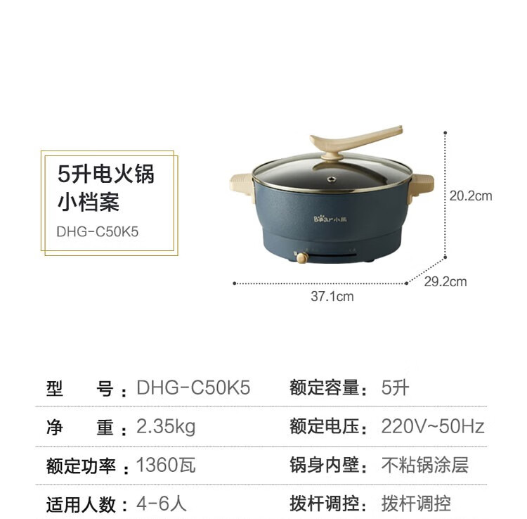 小熊(Bear) DHG-C50K5 5L 电火锅 深蓝色(单位:台)