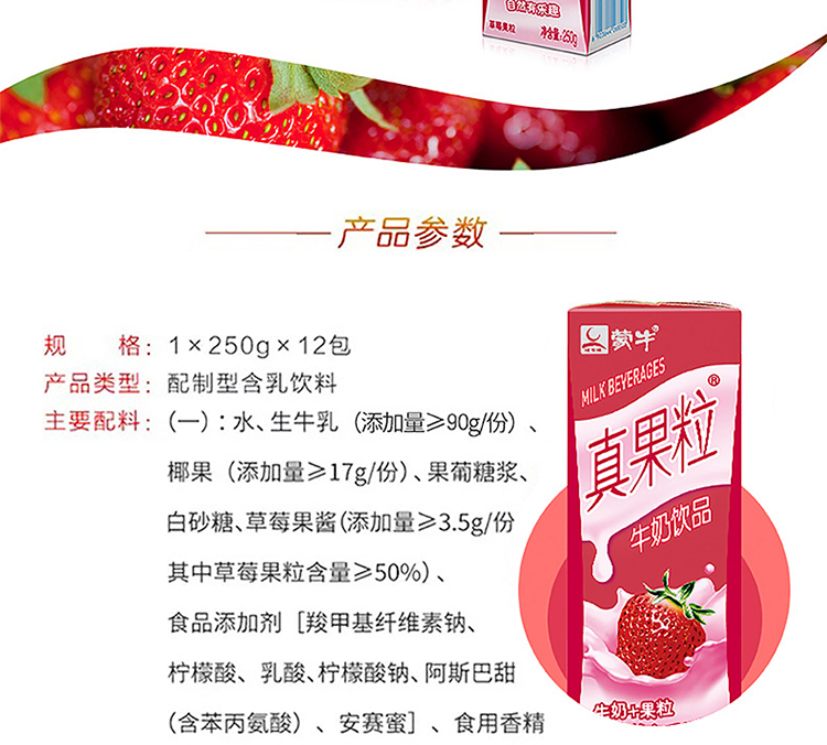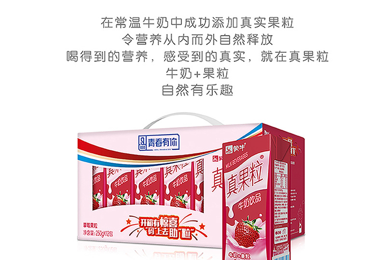 蒙牛 真果粒草莓250g*12盒/箱 玫瑰红色