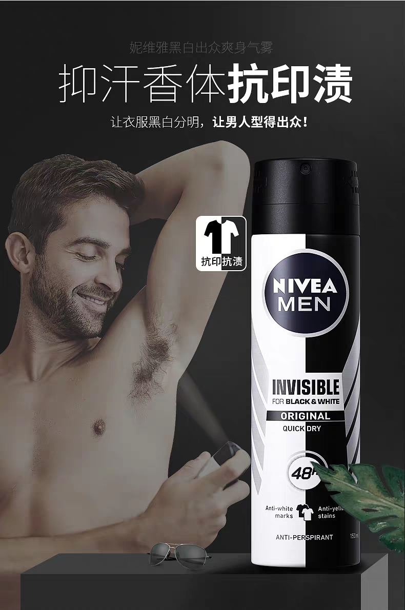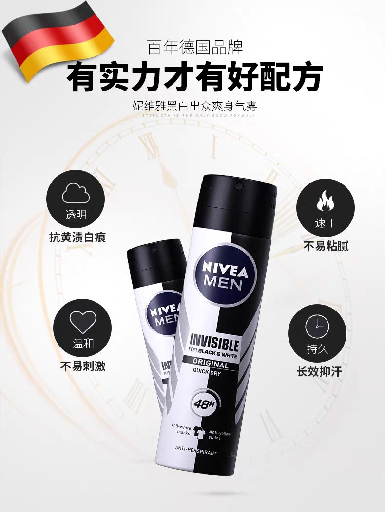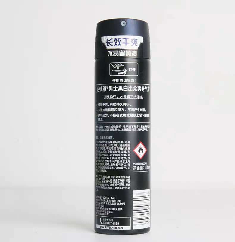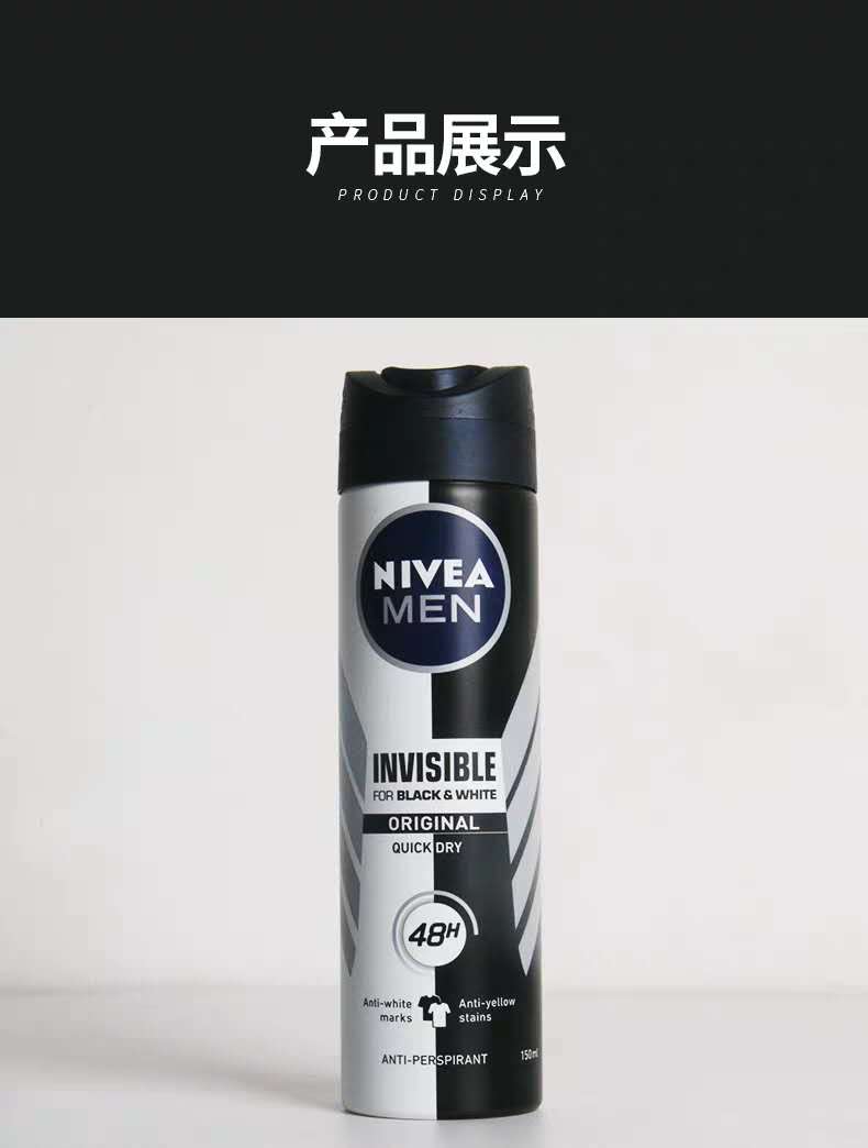 妮维雅男士黑白出众爽身气雾150ml爽身止汗 铁灰色 铁灰色