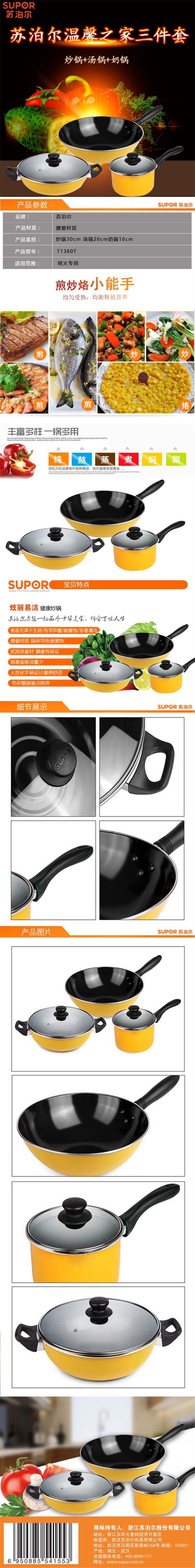 苏泊尔(SUPOR)温馨之家三件套/T1360T(30cm炒锅+26cm汤锅+16cm奶锅)/套 黄色