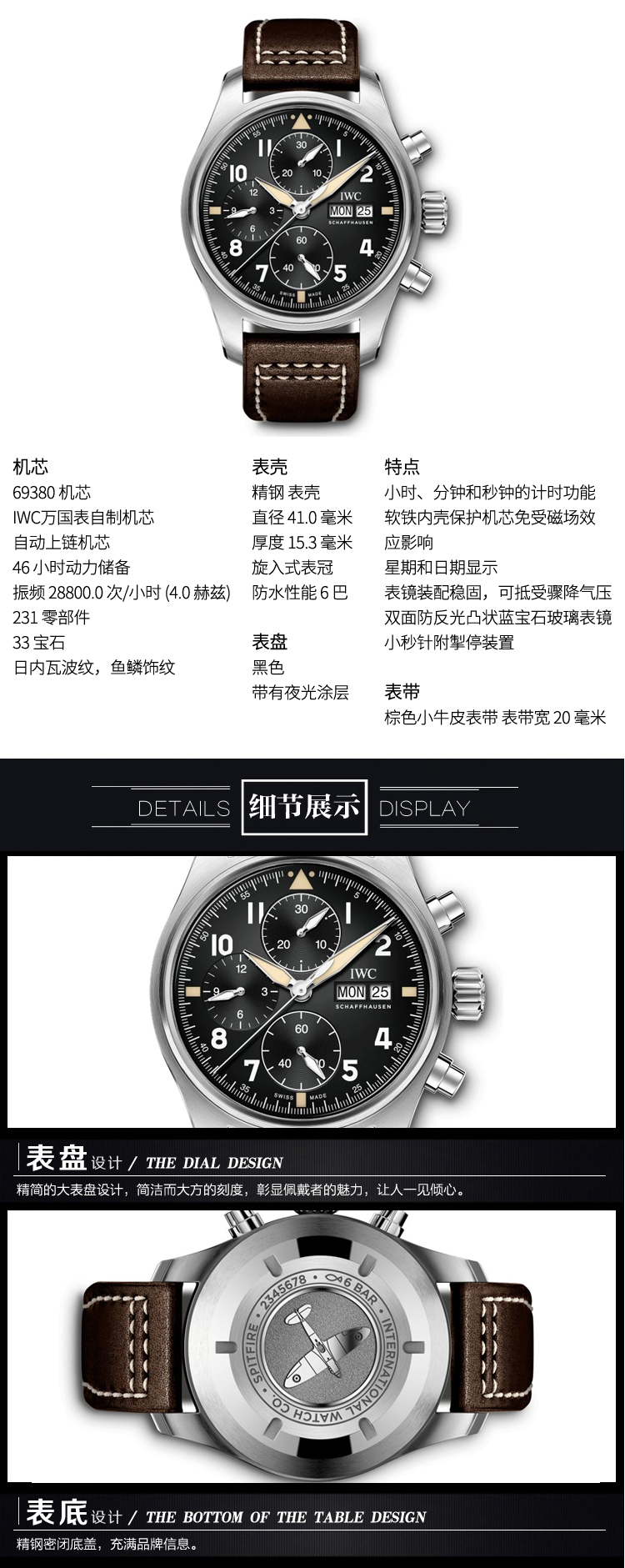 IWC万国 喷火战机飞行员系列自动机械计时手表男腕表 IW387903 单位:块 黑色