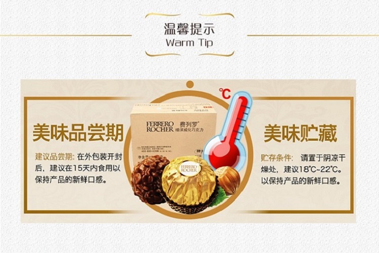 费列罗榛果威化巧克力制品15粒心型红色蝴蝶结装(偏远地区除外)(单位:盒) 金色