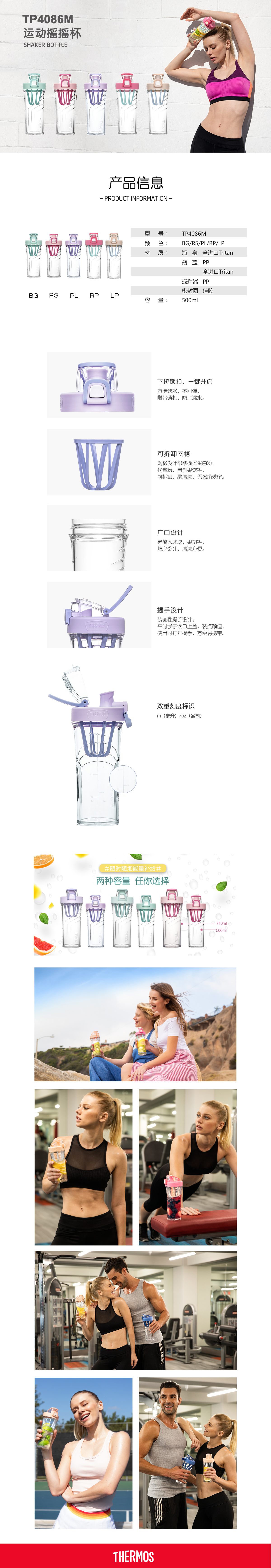 膳魔师(THERMOS) 便携运动Tritan塑料水杯500MLTP-4086M(单位:个) 粉色
