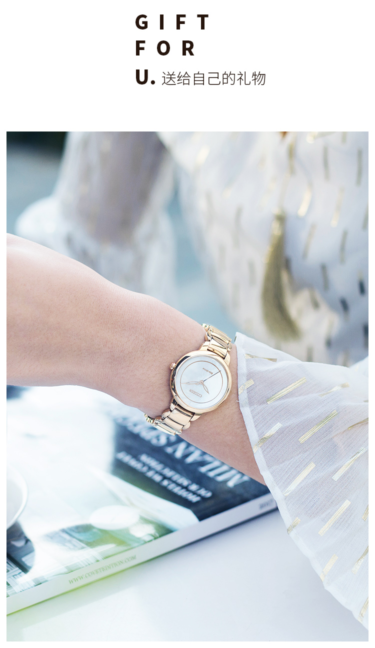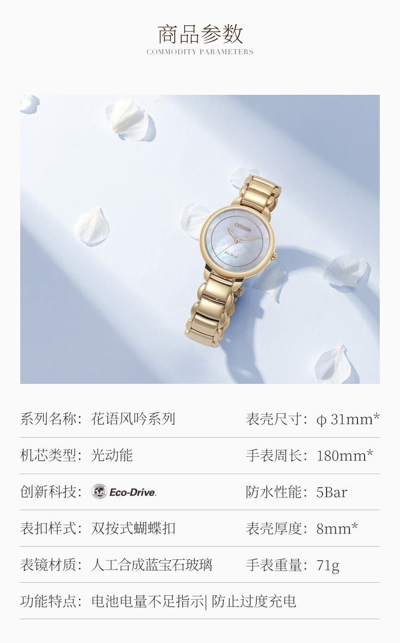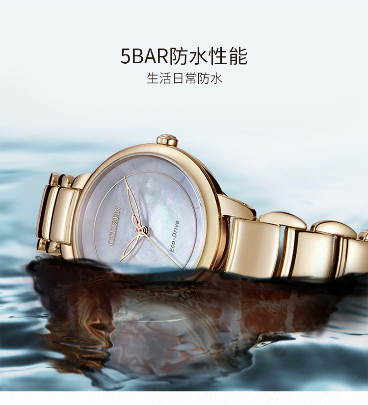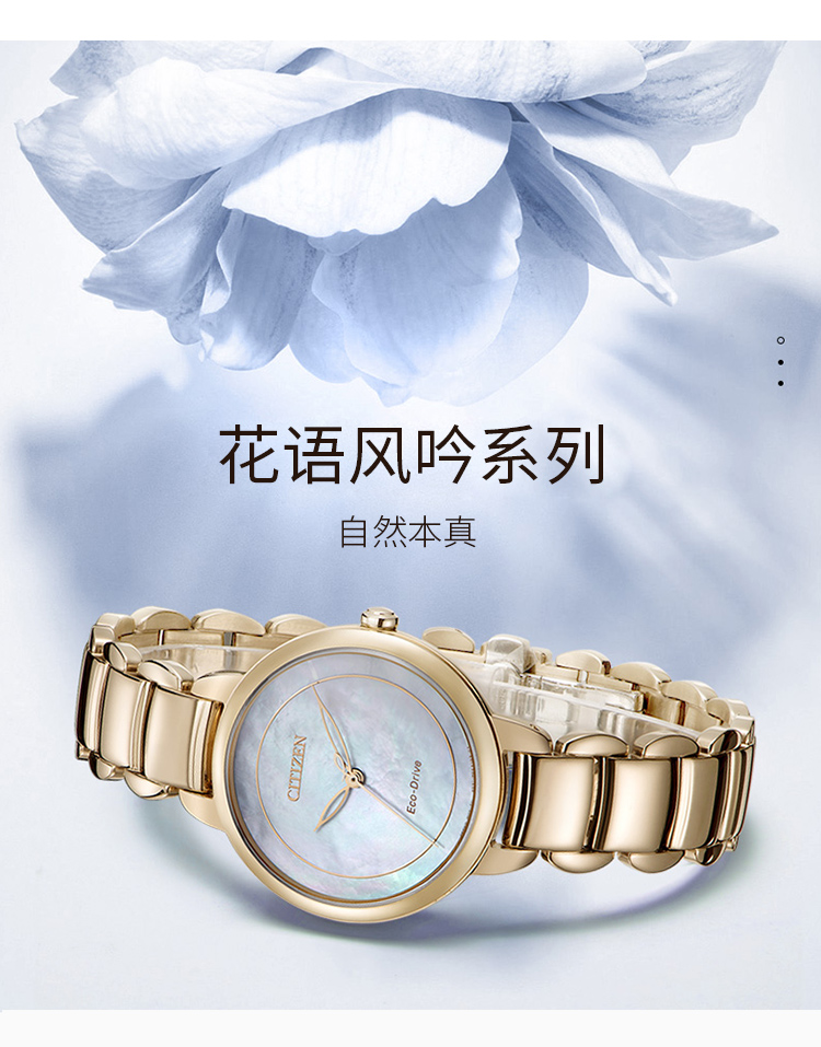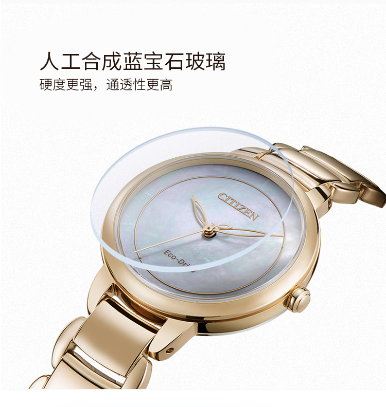 Citizen西铁城 光动能手表贝母盘钢带女表 EM0673-83D 玫瑰金 玫瑰金