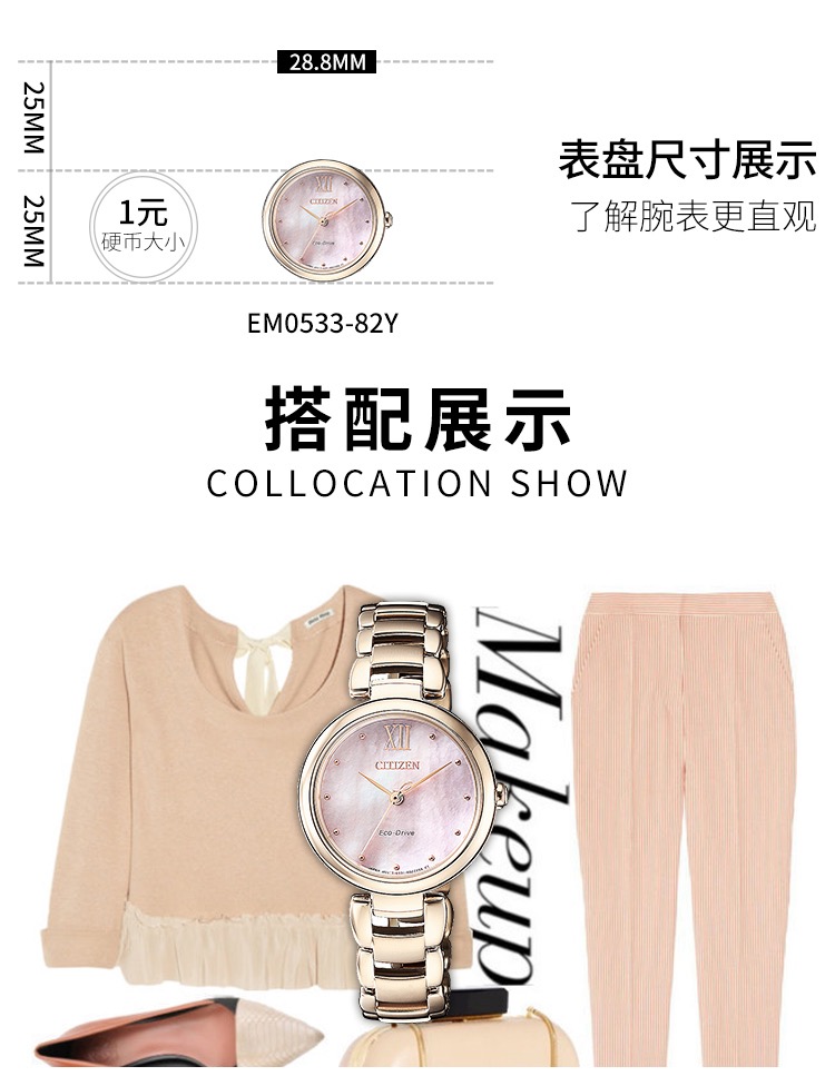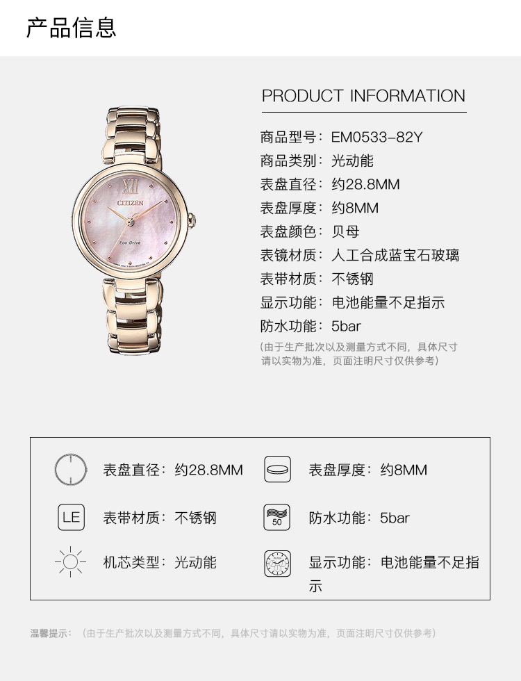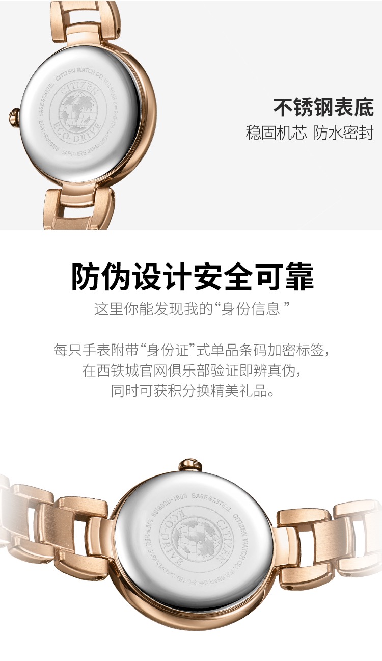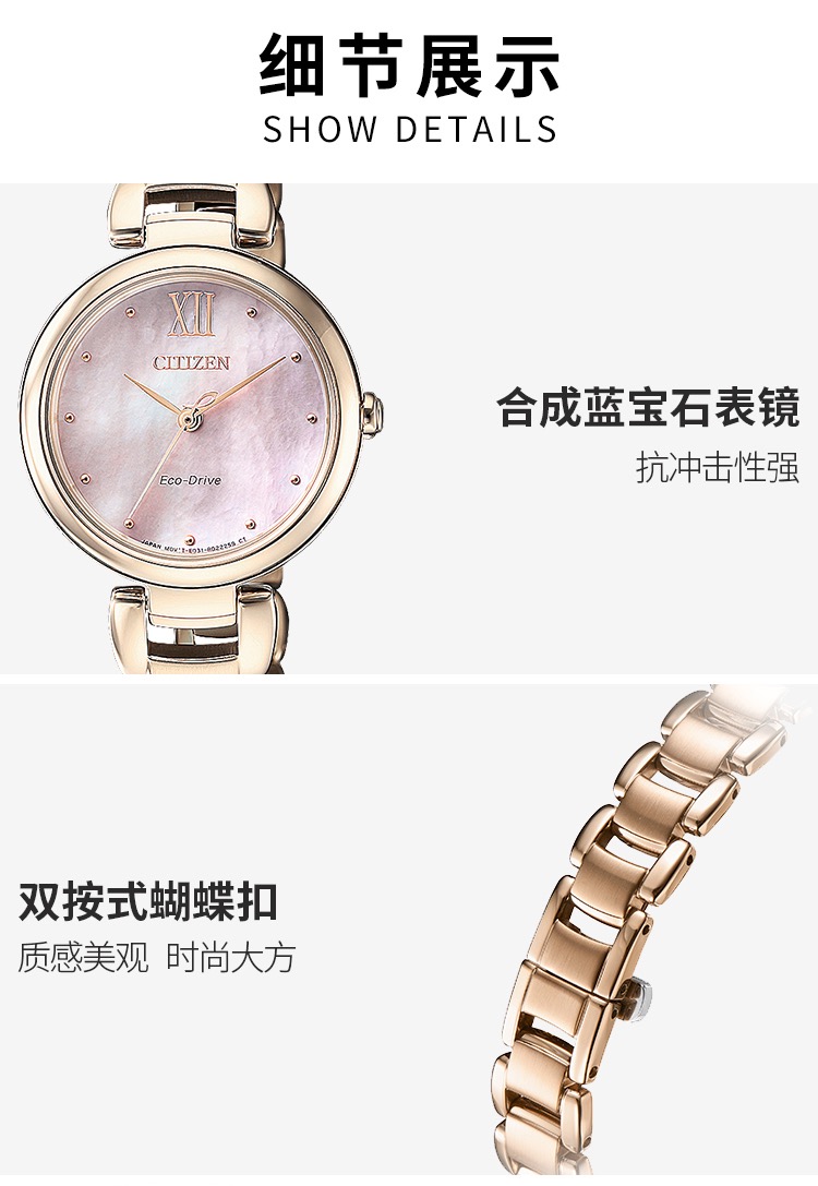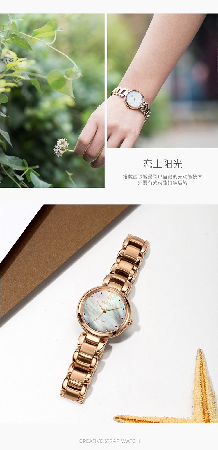 CITIZEN西铁城 花语风吟系列 光动能钢带女表 EM0533-82Y 单位:块 玫瑰金