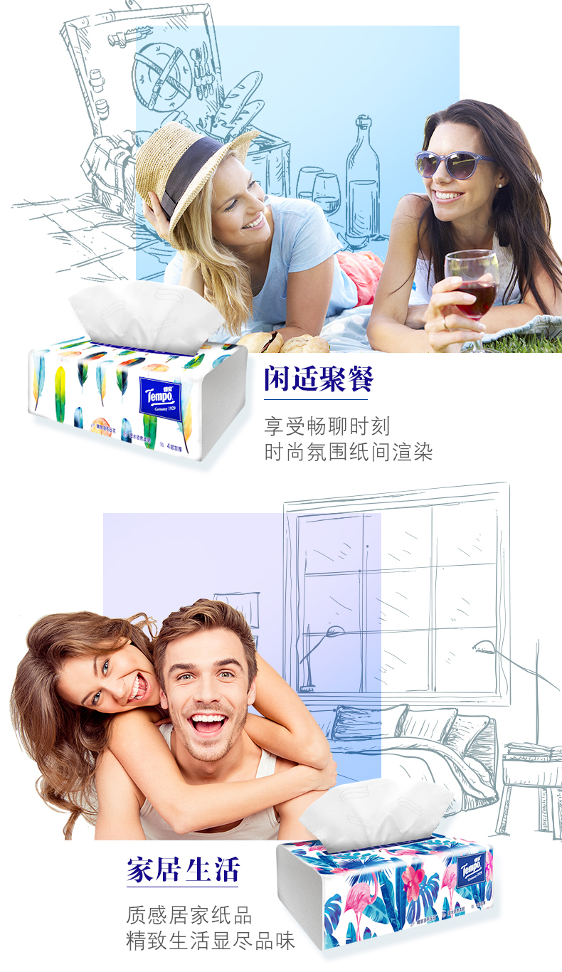 得宝Mini系列家用加厚印花抽纸4层80抽*10包(新疆、西藏、青海、内蒙、甘肃、宁夏不发货) 图片色 图片色