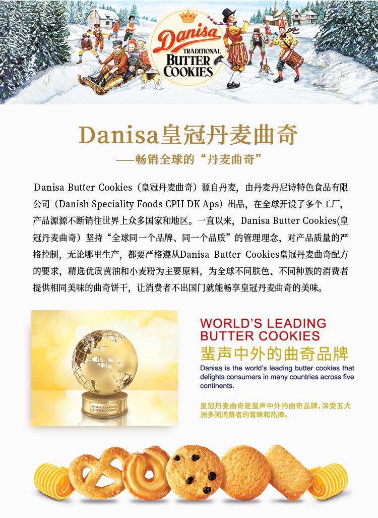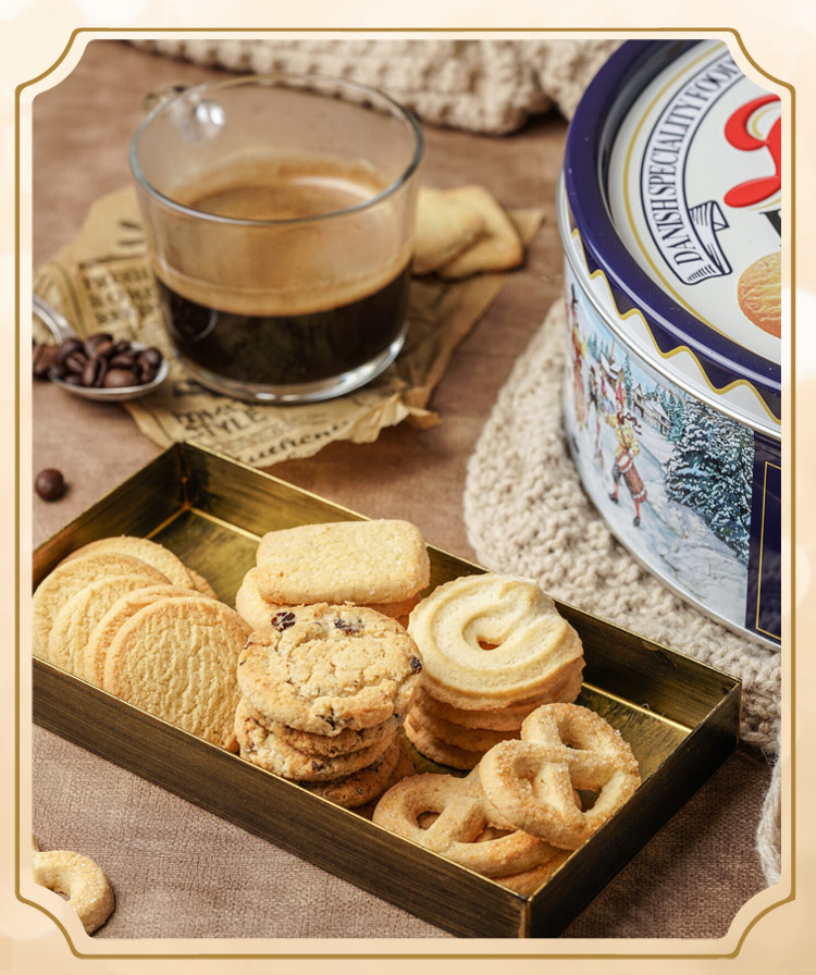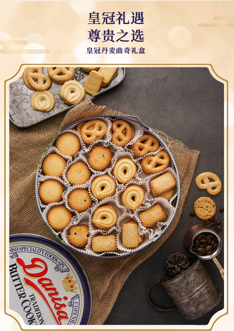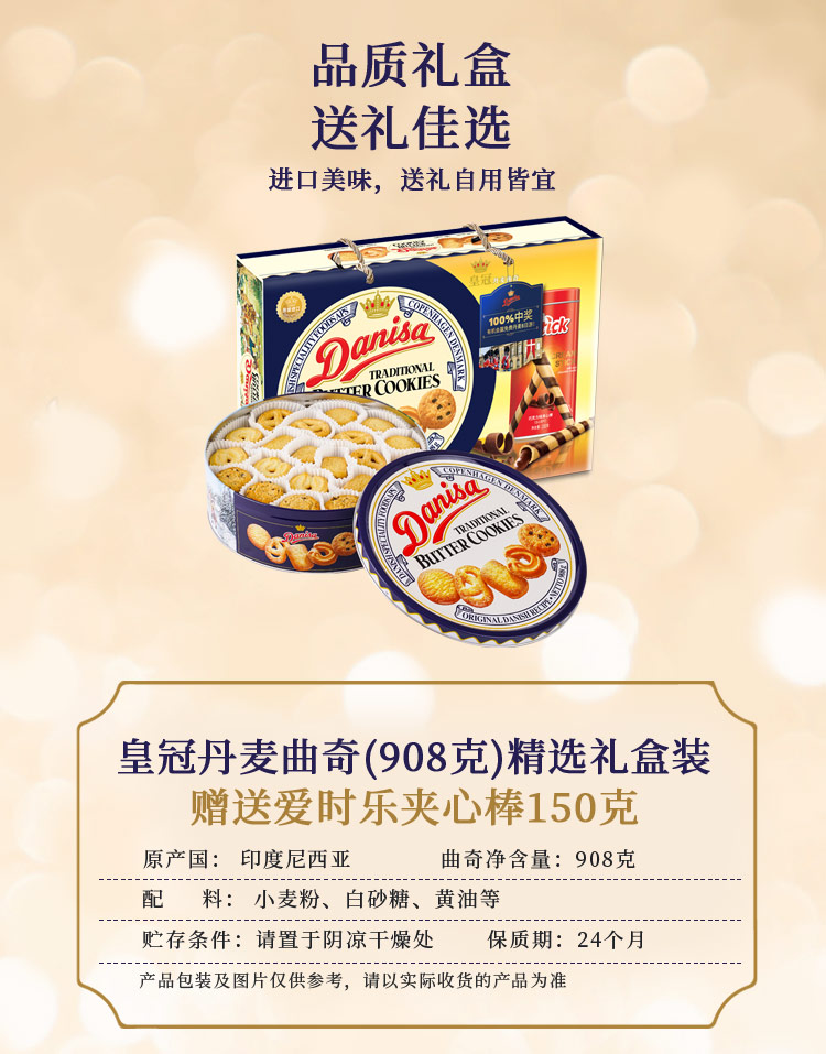 丹麦皇冠曲奇908g赠爱时乐卷心酥饼干年货礼盒大礼包(单位:盒) 黄色