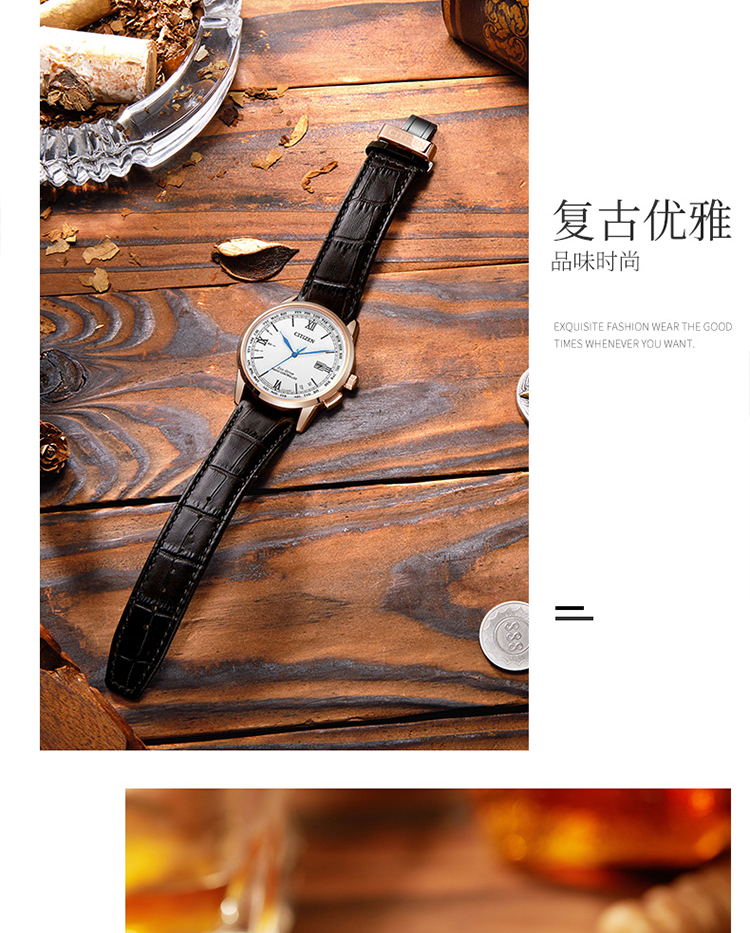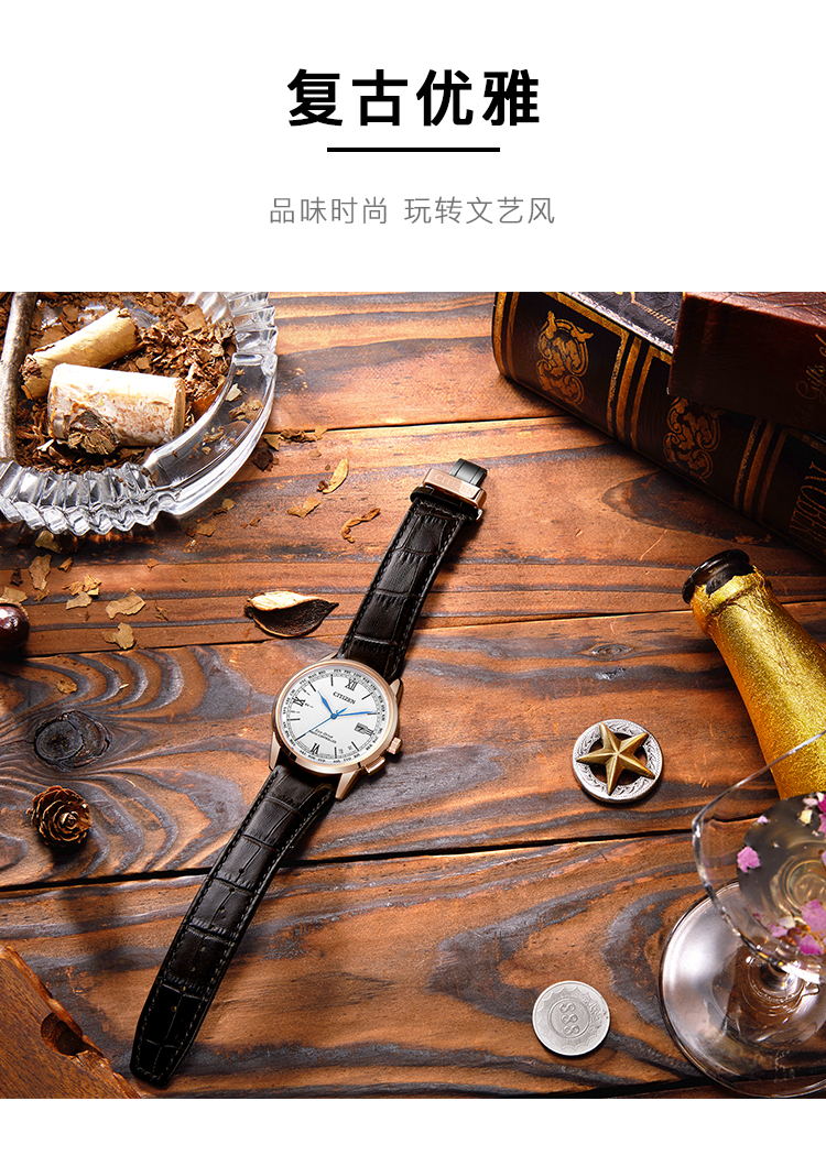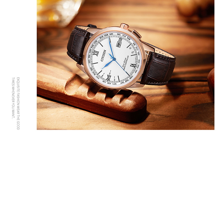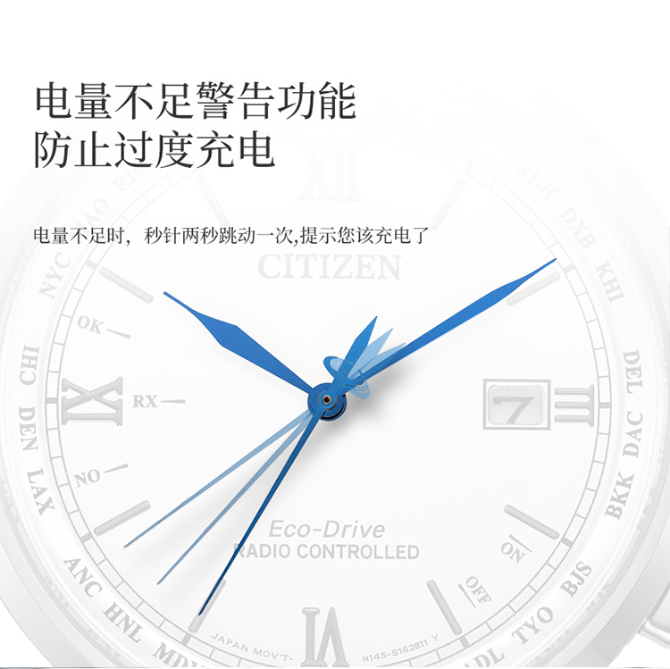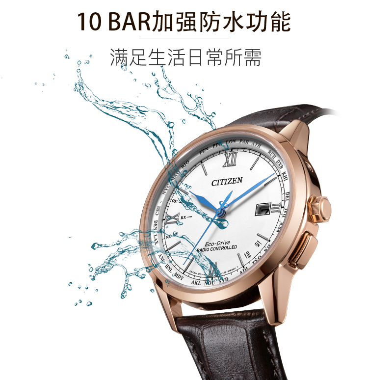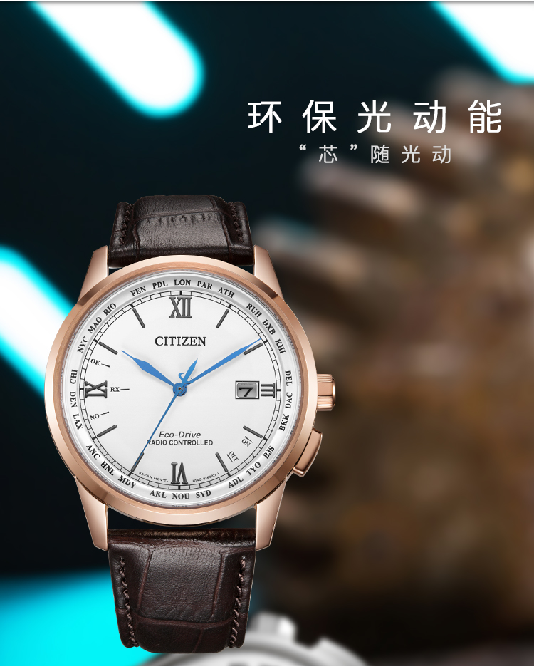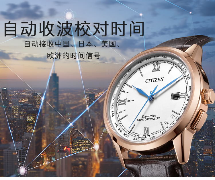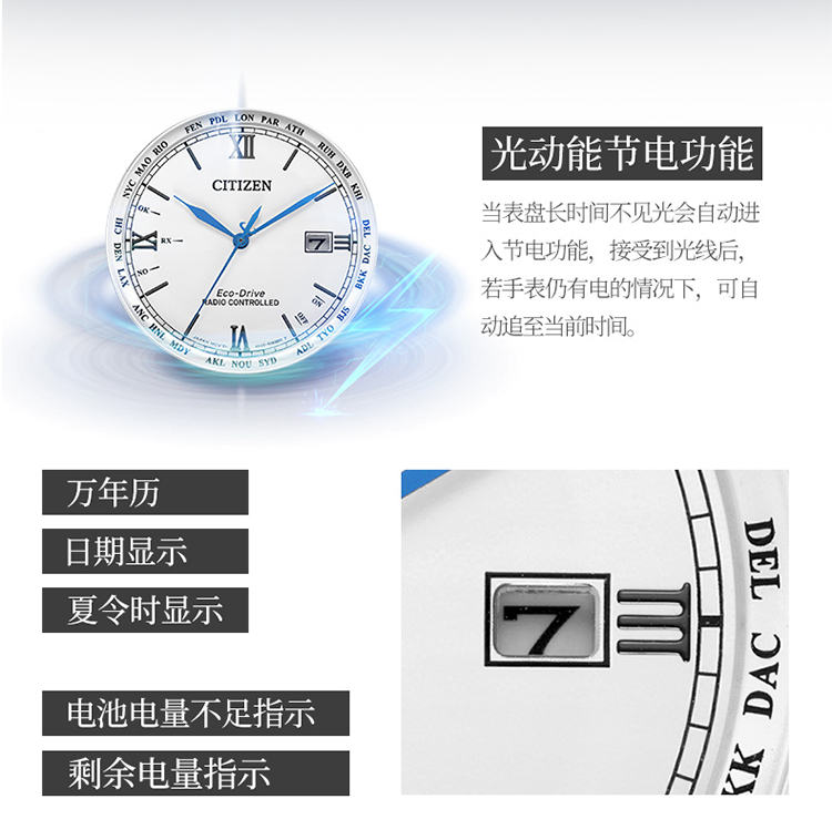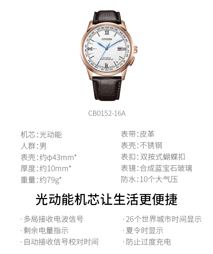 Citizen西铁城 羽生结弦官宣同款多局电波光动能白盘皮带休闲时尚男表CB0152-16A(只) 白色