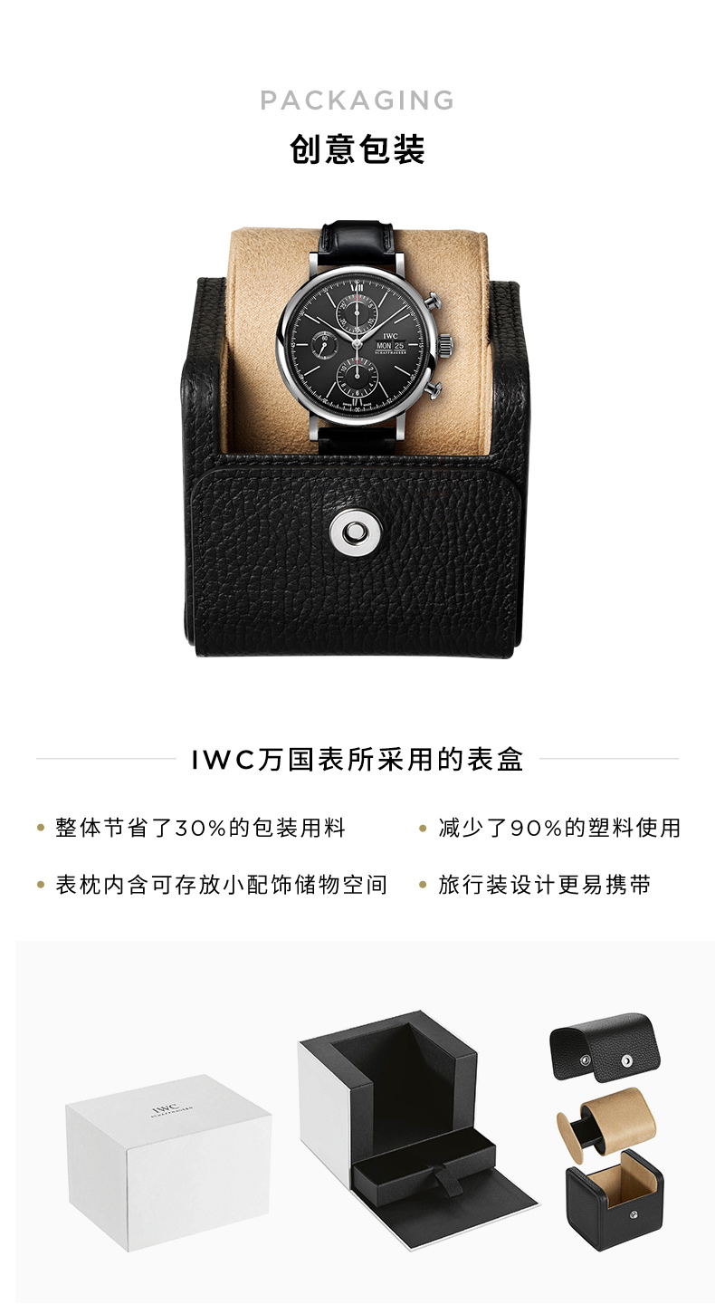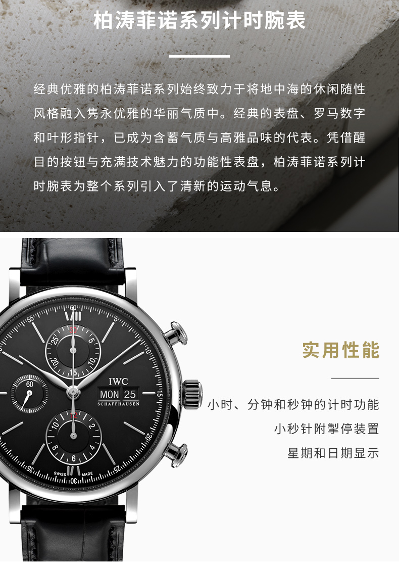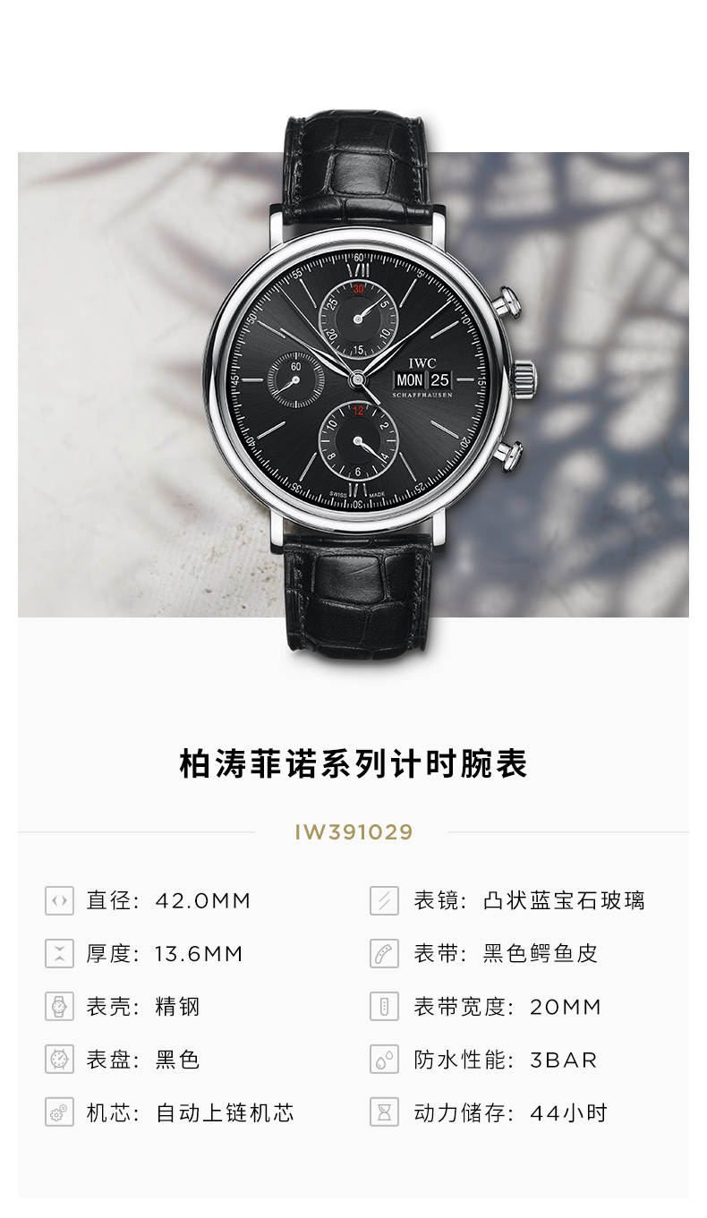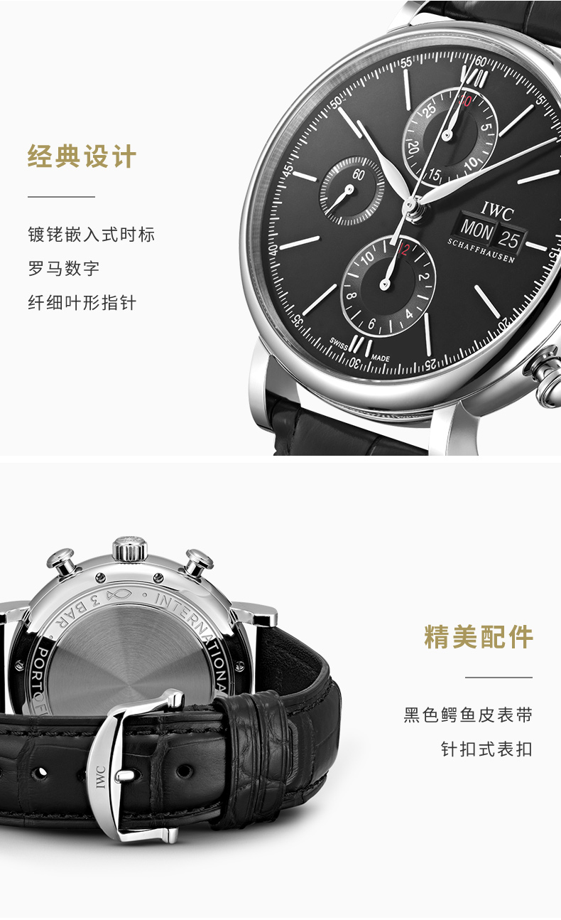 IWC万国 柏涛菲诺系列自动机械三眼手表黑盘黑带男表 IW391029 单位:块 黑色