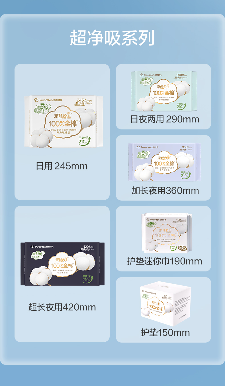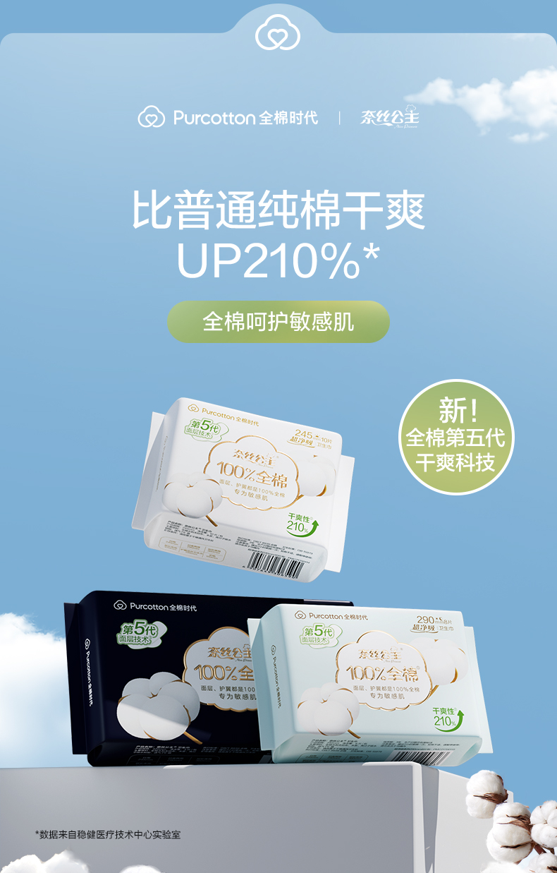 全棉时代 PurCotton 卫生巾奈丝公主超净吸系列亲肤超薄日用245MM10片*3包(单位:包) 245mm