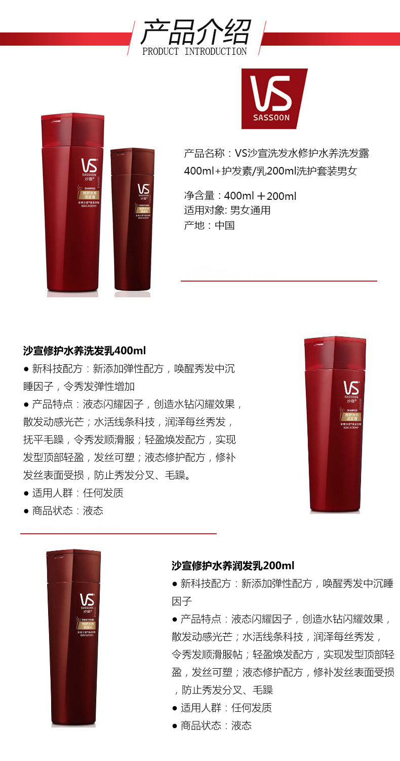 沙宣修护水养400毫升洗发水+200毫升护发素洗护优惠装 混色 混色