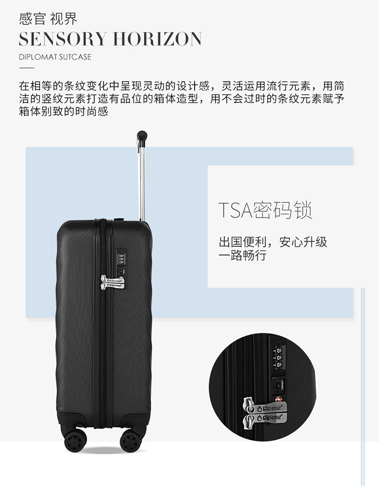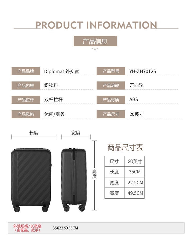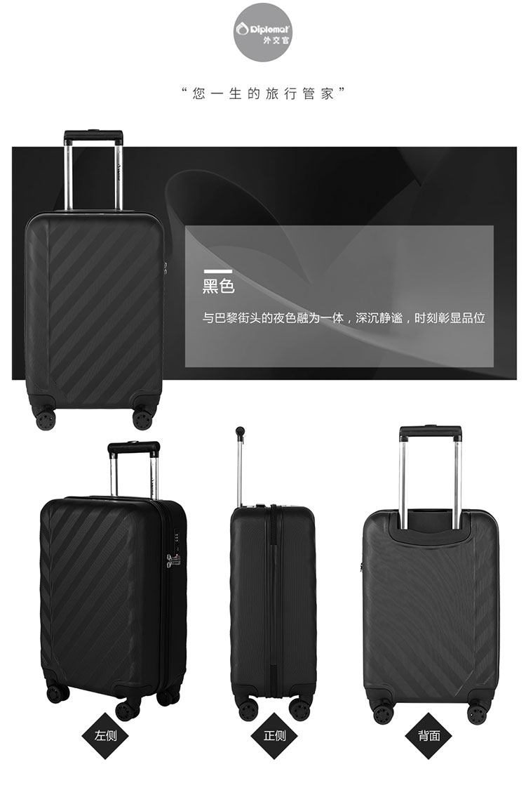 外交官(Diplomat) YH-ZH7012S 材质ABS 拉杆箱 20寸 黑色(单位:个)