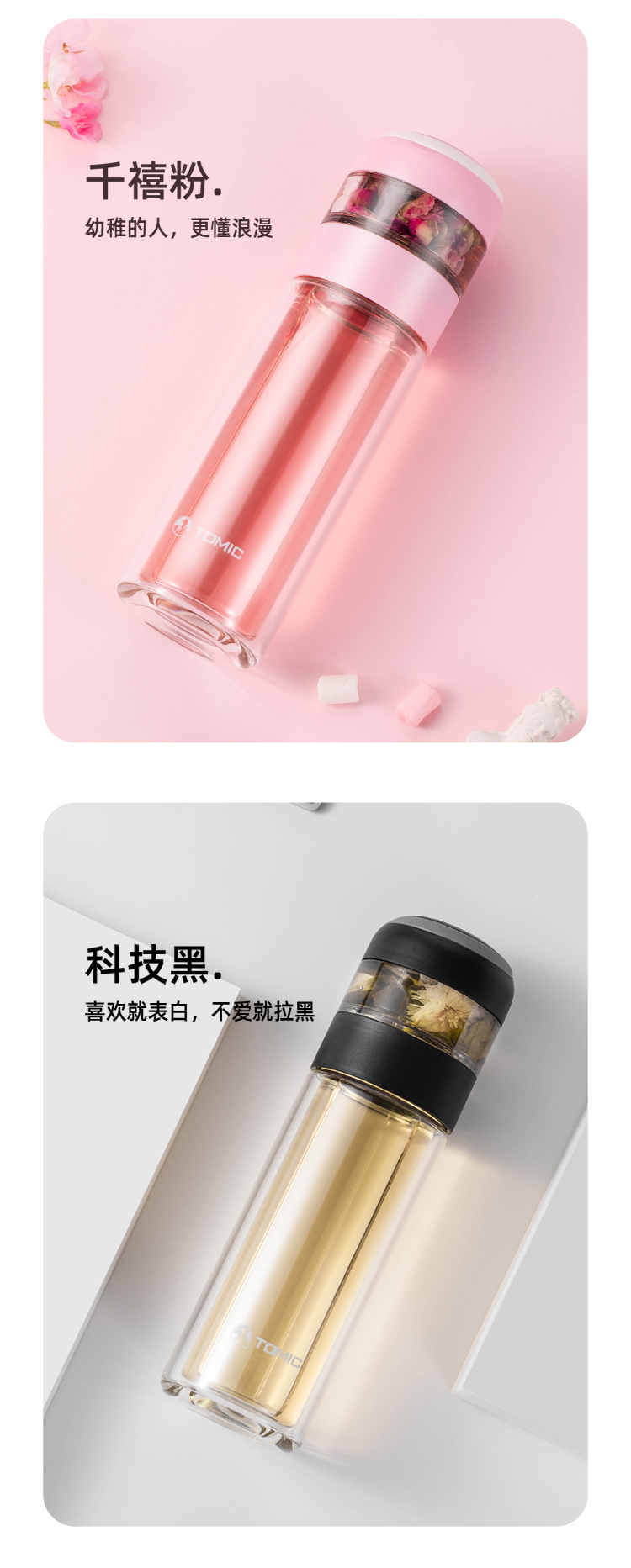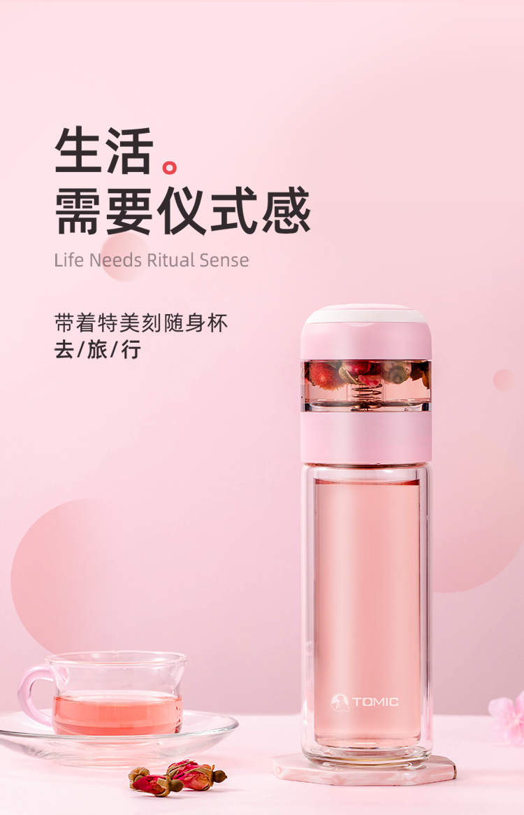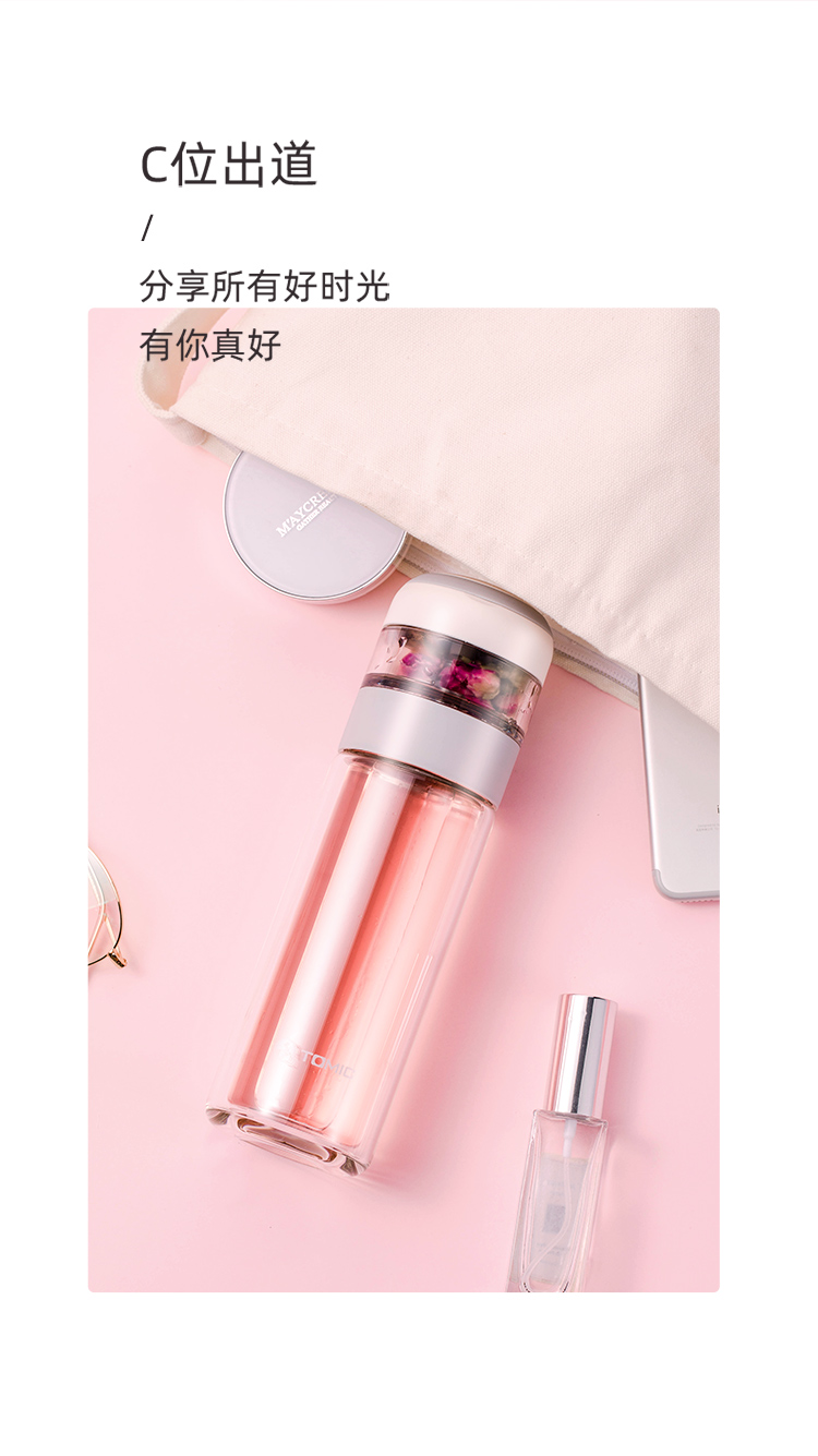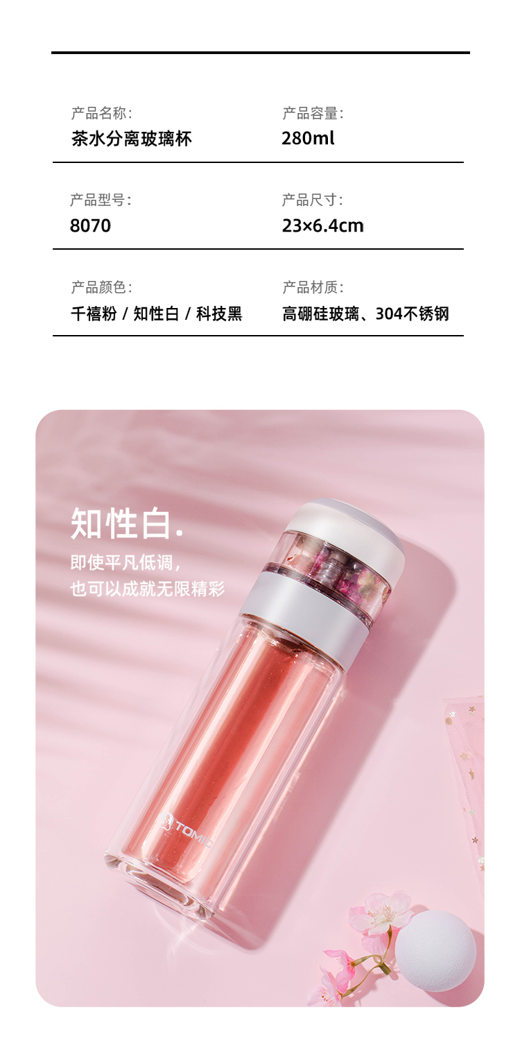 Tomic/特美刻泡茶杯高硼硅双层玻璃杯TG80702 茱萸粉 茱萸粉