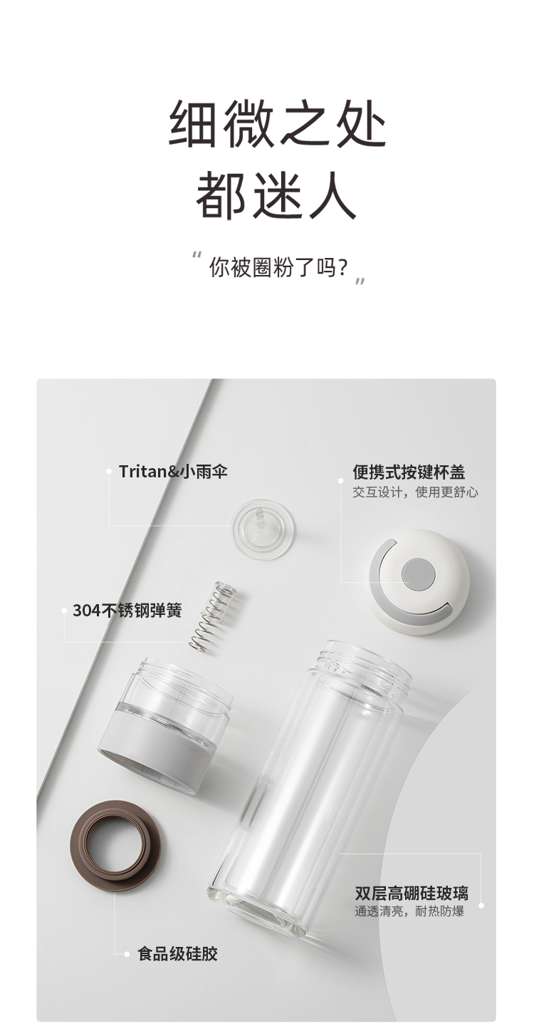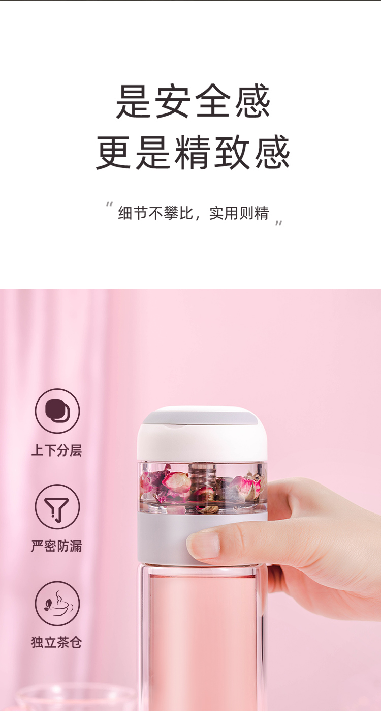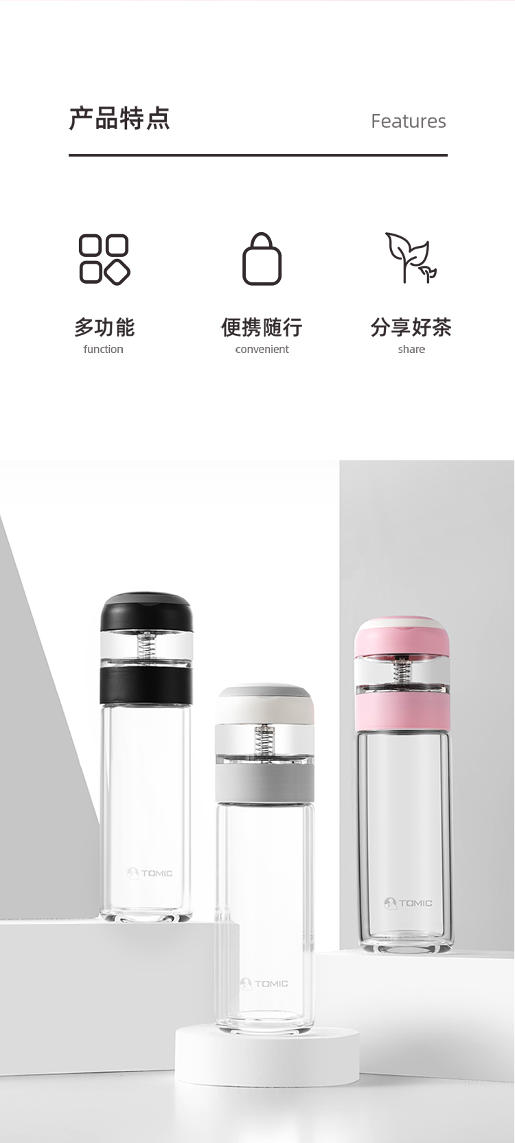 Tomic/特美刻泡茶杯高硼硅双层玻璃杯TG80702 茱萸粉 茱萸粉