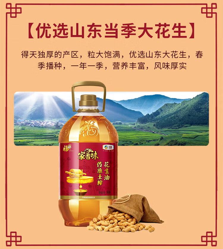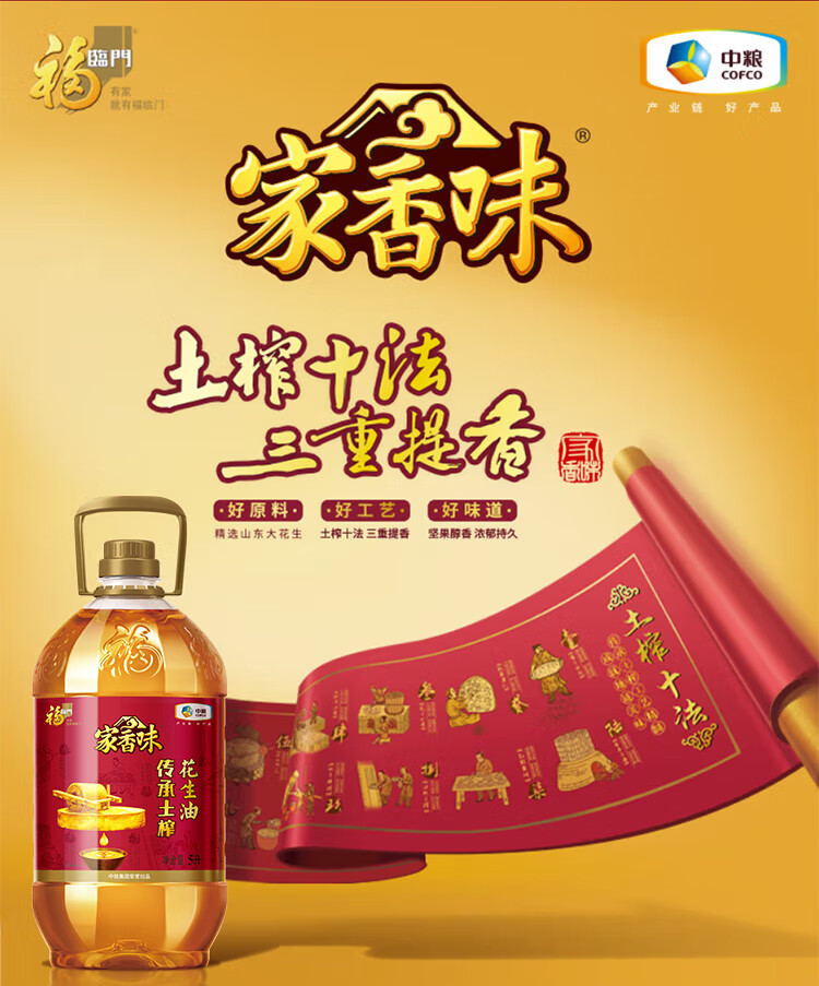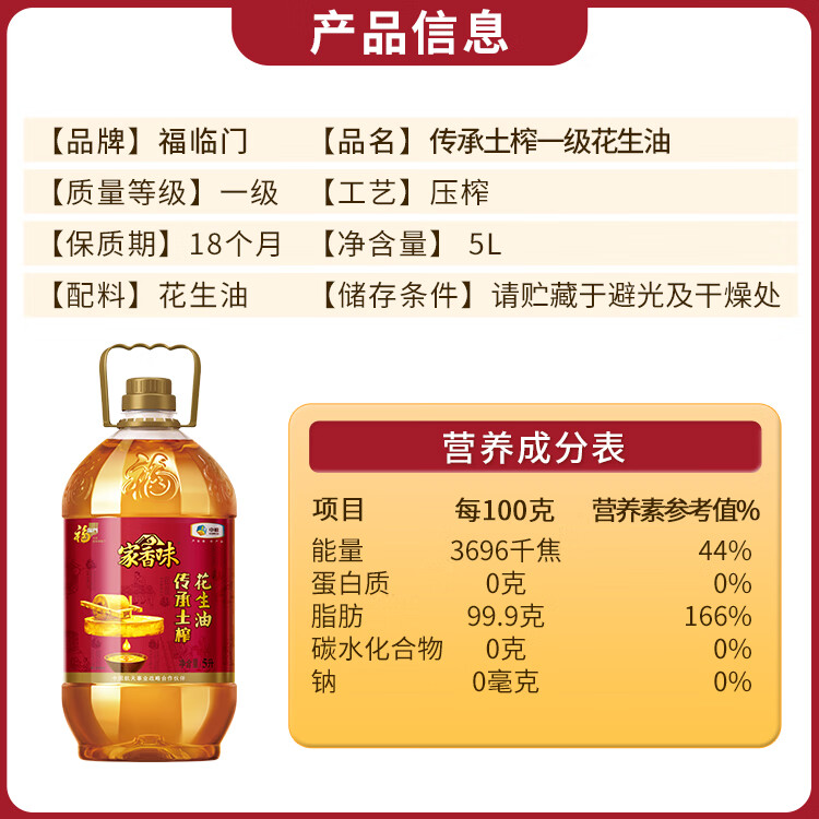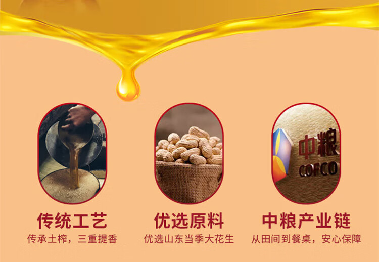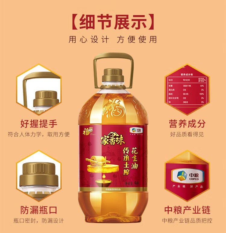 中粮福临门土榨花生油5L 褐色 单位:桶 褐色