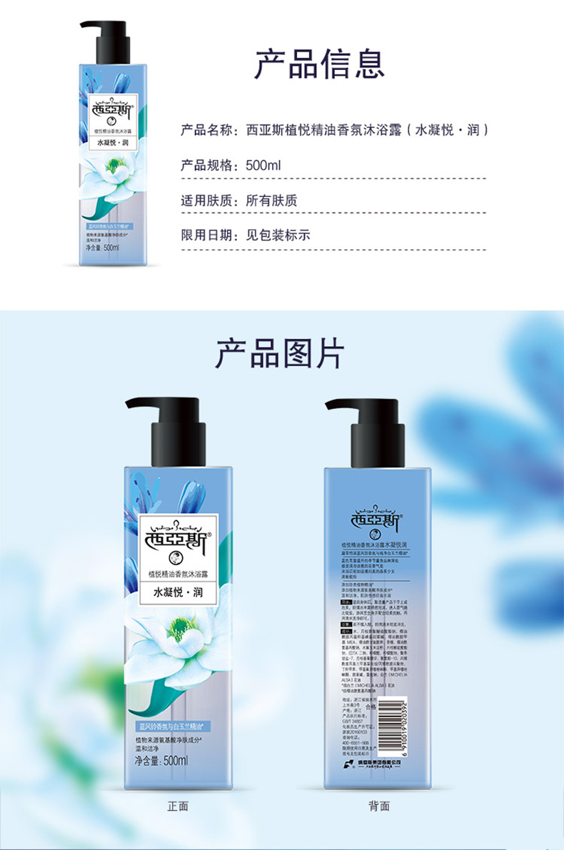 西亚斯植悦精油香氛沐浴露(水凝悦·润)(新疆、青海、西藏不发货) 500ml