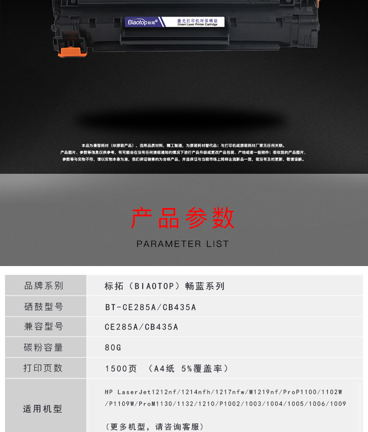 标拓CE285A/CB435A硒鼓适用惠普1212nf/1214nfh/Pro P1100/1102W/P1109W /Pro M1130/1132 黑色 黑色
