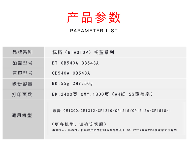 标拓 BT-CB540A/CE320A/CF210A 打印量2400页 适用惠普 CM1300 硒鼓 1.00 只/支 (计价单位:支) 黑色