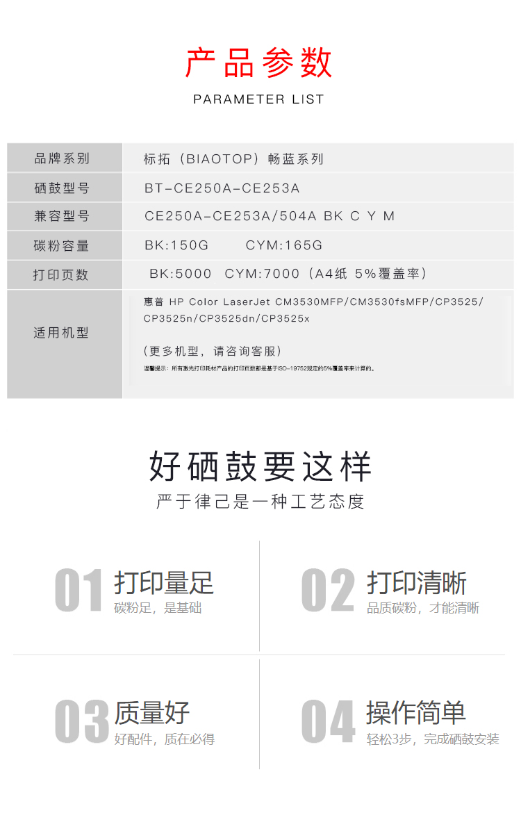 标拓 (Biaotop) CE250A-253A彩色硒鼓适用惠普HP Color LaserJet CM3530MFP/CM3530fsMFP/CP3525打印机 畅蓝系列 蓝色 黄色