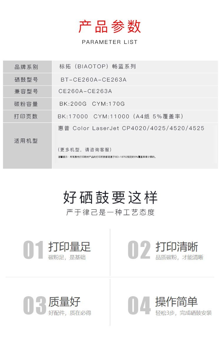标拓 BT-CE262A Y 打印量11000页 适用惠普HP CP4020/4025 硒鼓 1.00 只/支 (计价单位:支) 黄色
